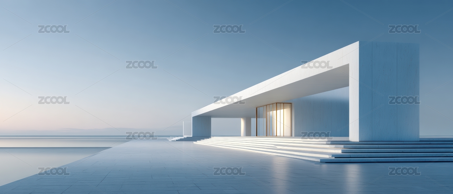 现代简约建筑与宁静海景