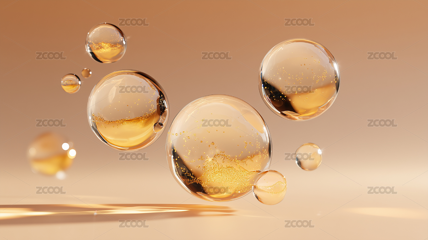 气泡,生物分子,未来,球体,玻璃,透明,银色,金色,点缀,漂浮