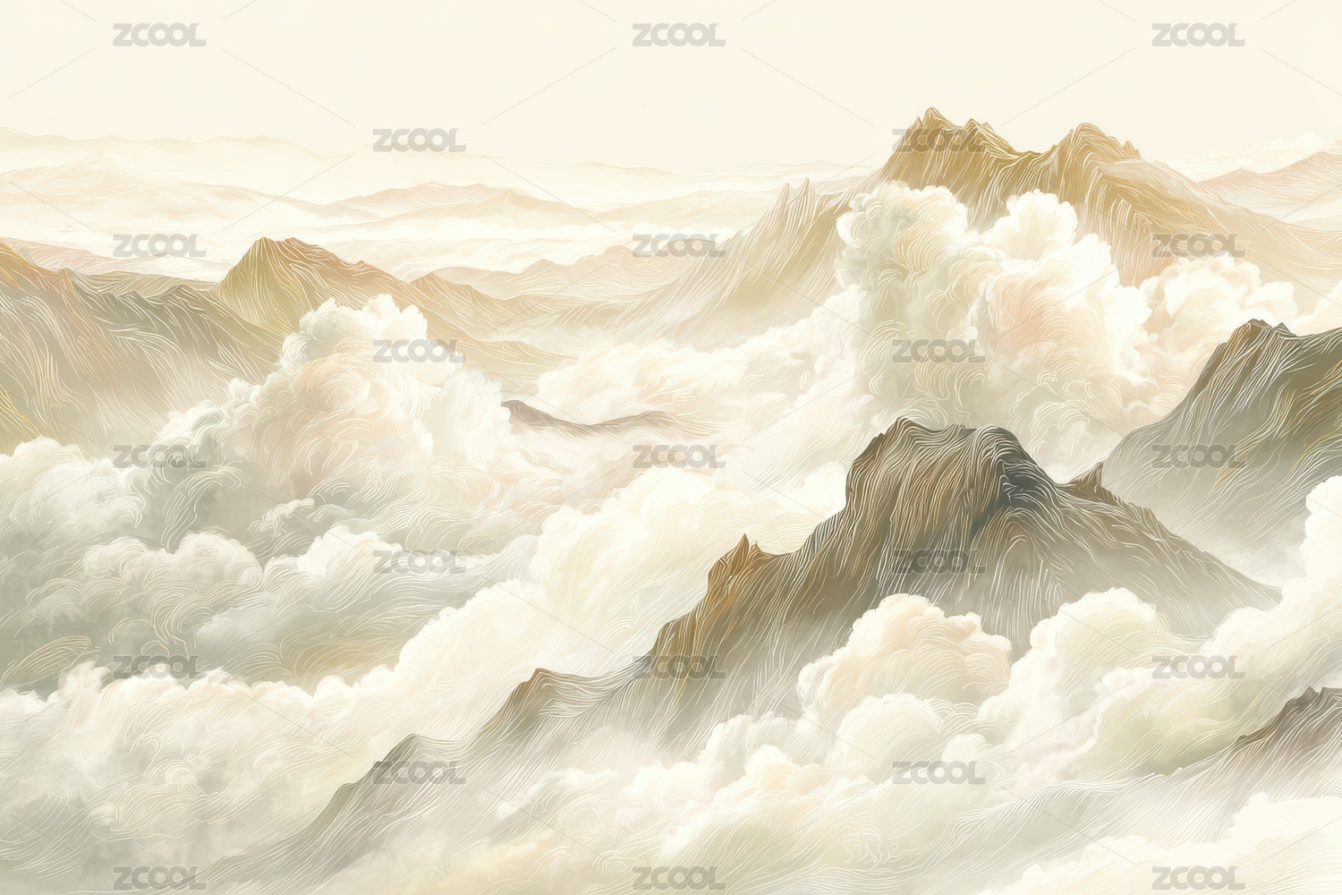金云环绕的山峦艺术画卷