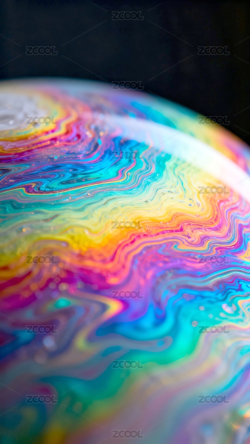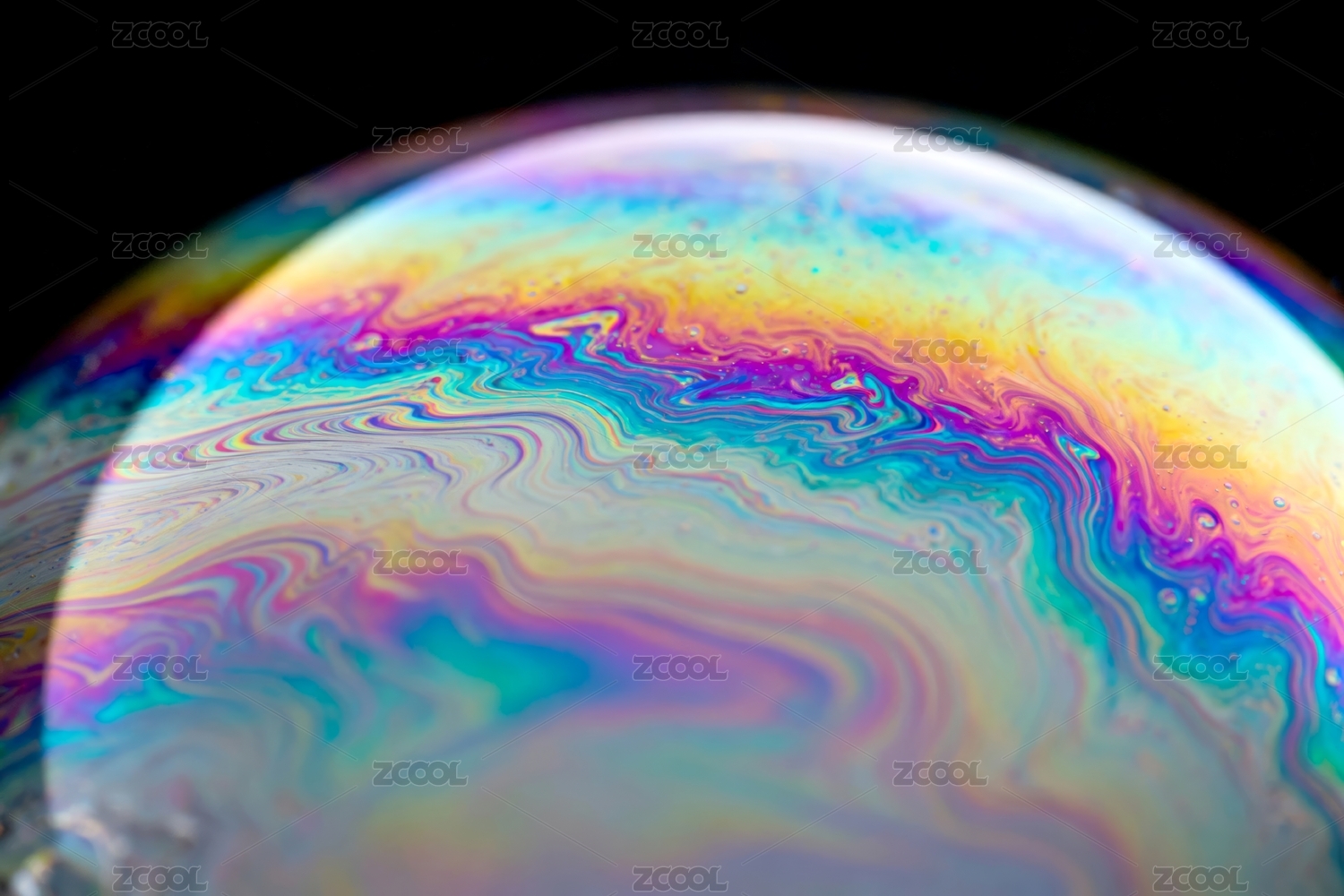 绚丽多彩的肥皂泡泡在不同时期的反射光