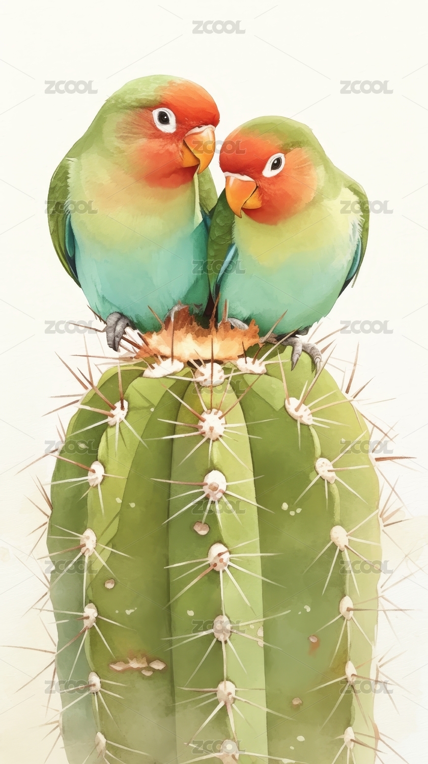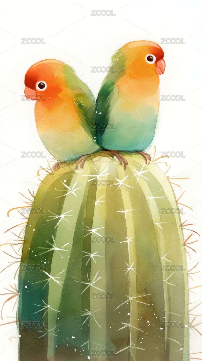 仙人掌上的两只鸟