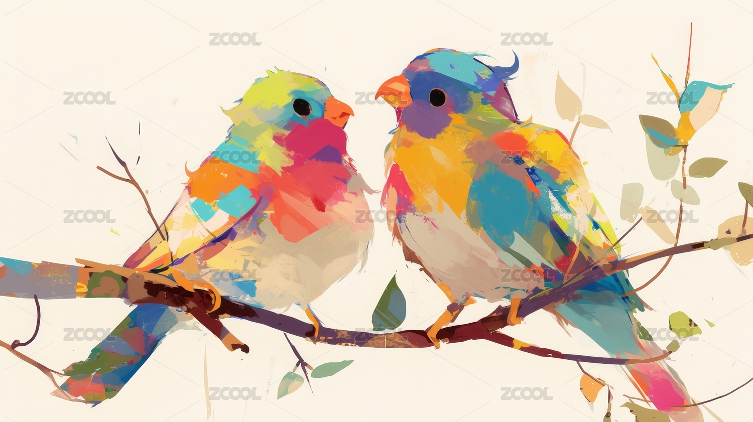 枝头双鸟色彩斑斓