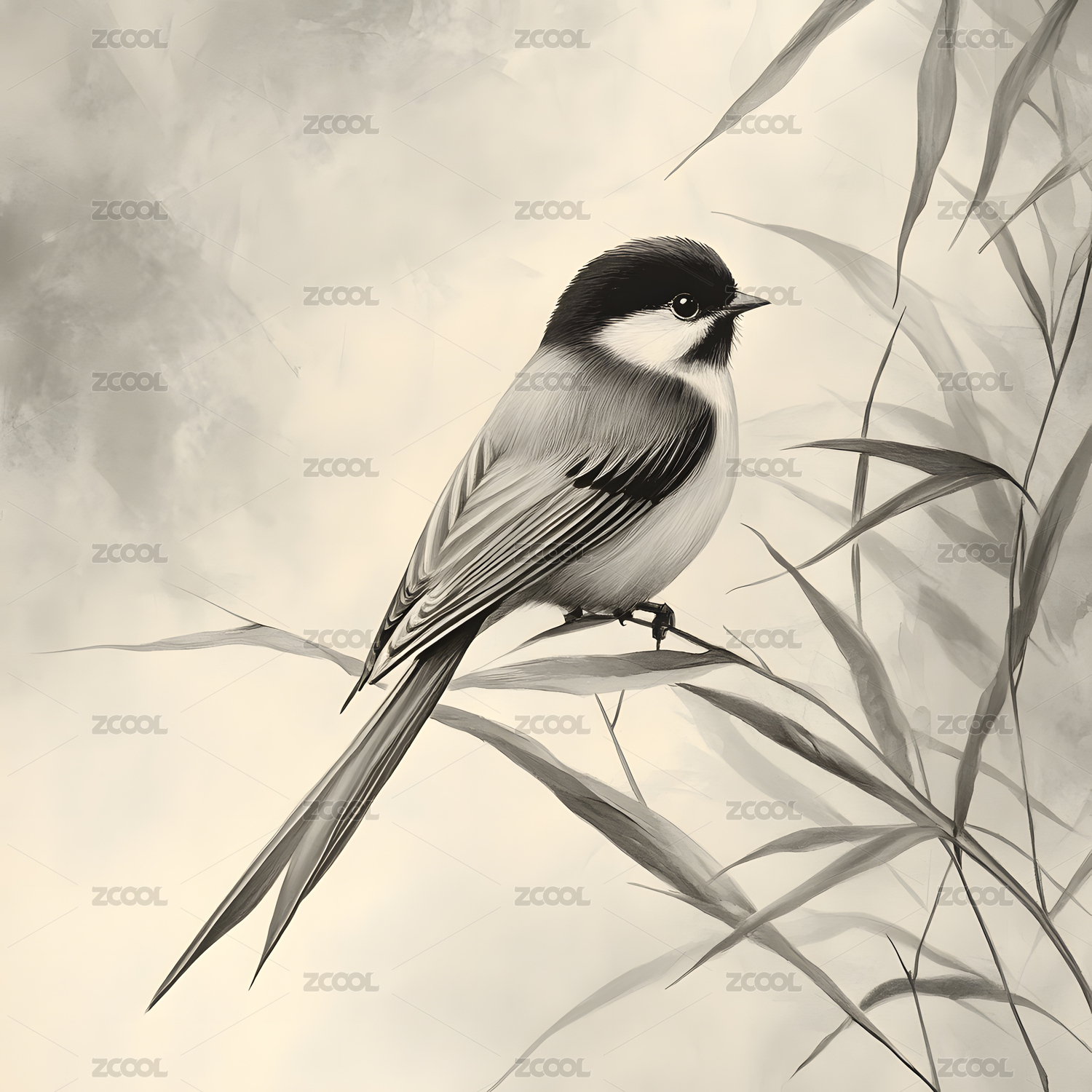 鸟 插画 扁平化 简洁 树枝 优雅 纯色