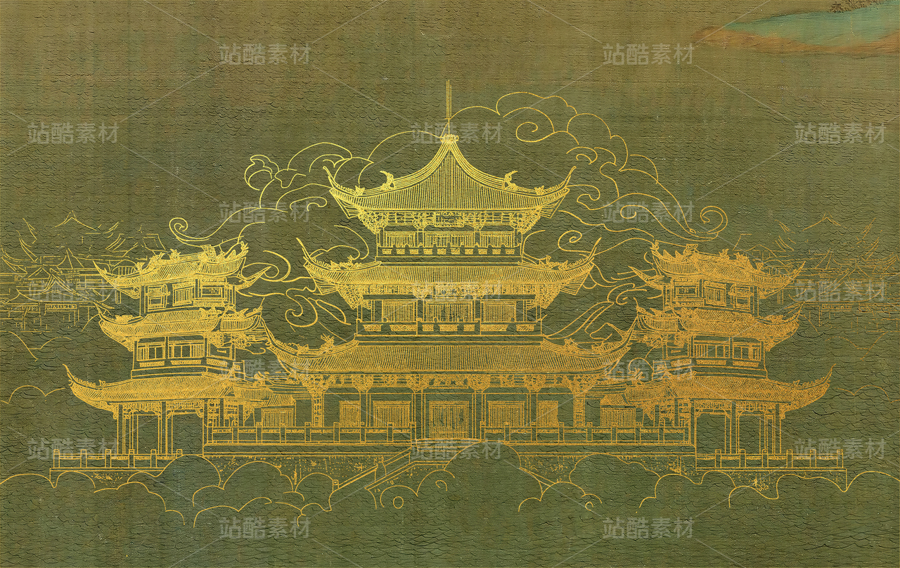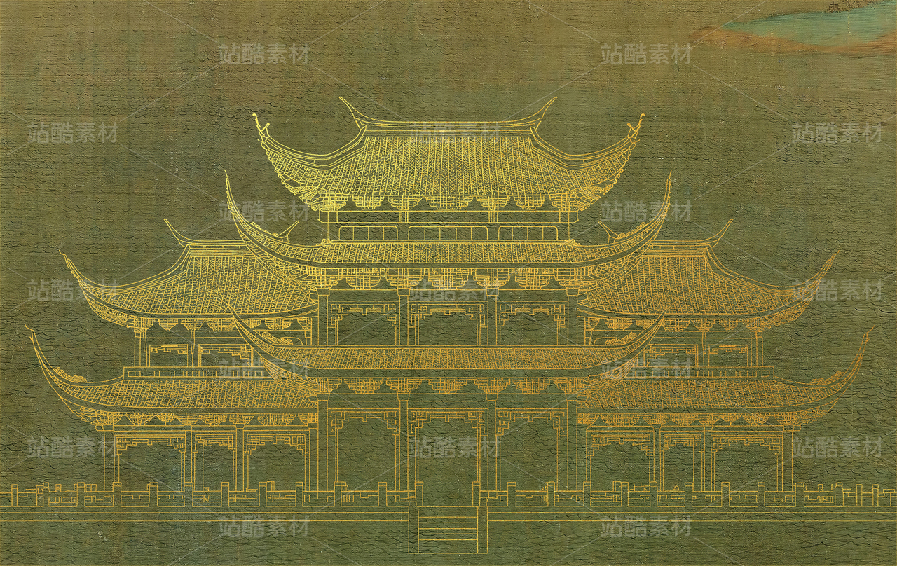 新款高清新款古画亭台楼阁新中式山水工装背景墙00