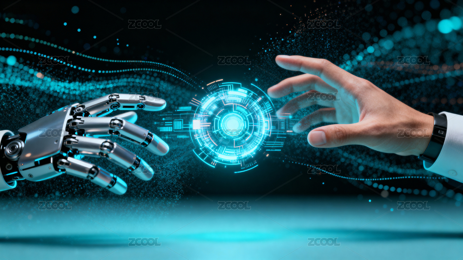 机器人手掌与科技光球