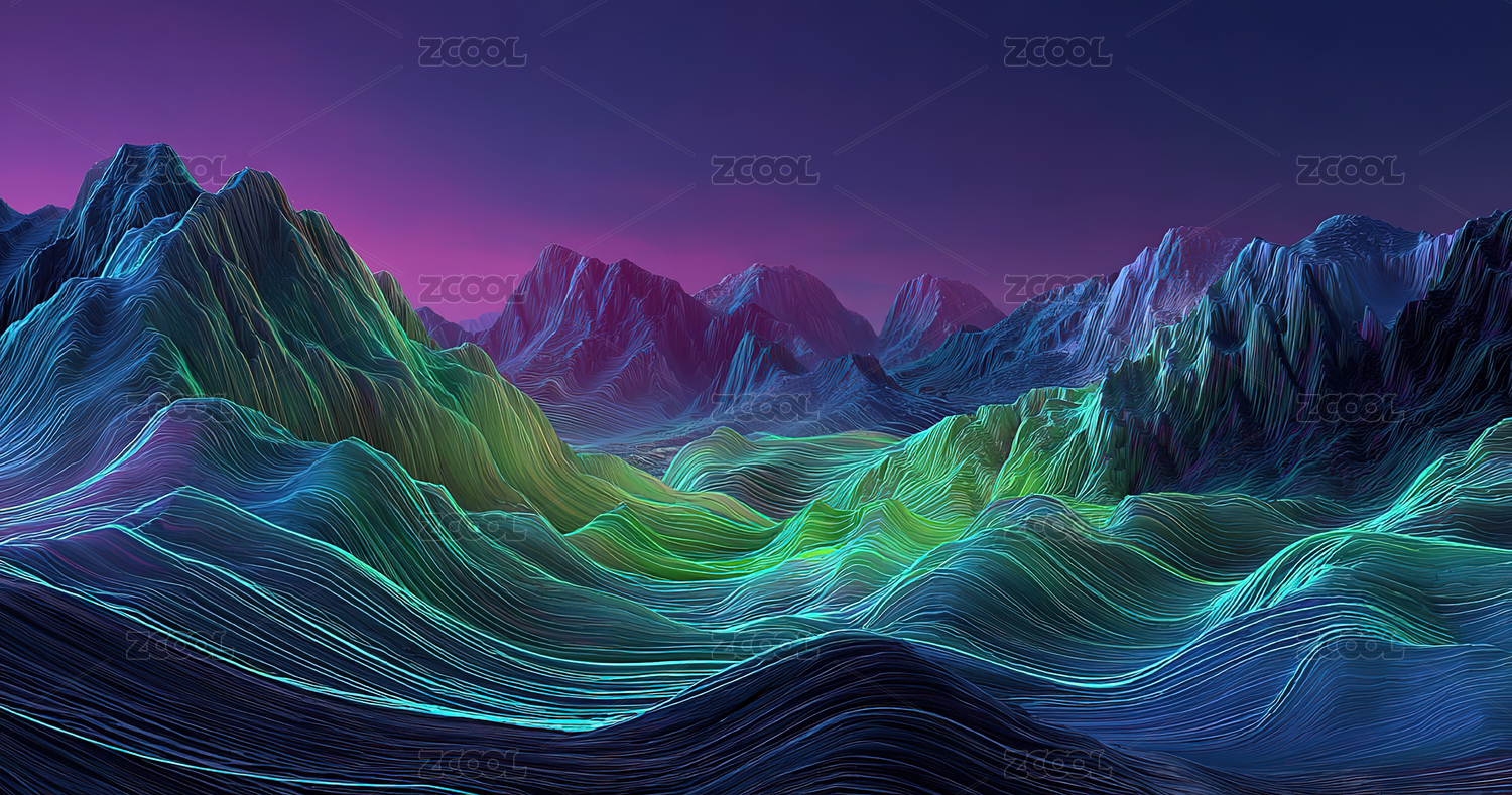 山丘,全息,未来,数字,景观,光芒,虹彩,环境,科幻,极简