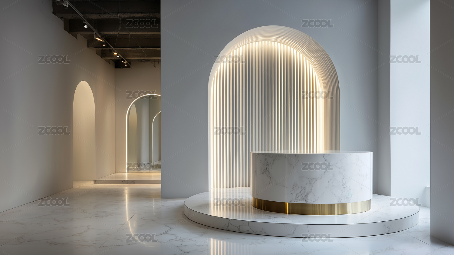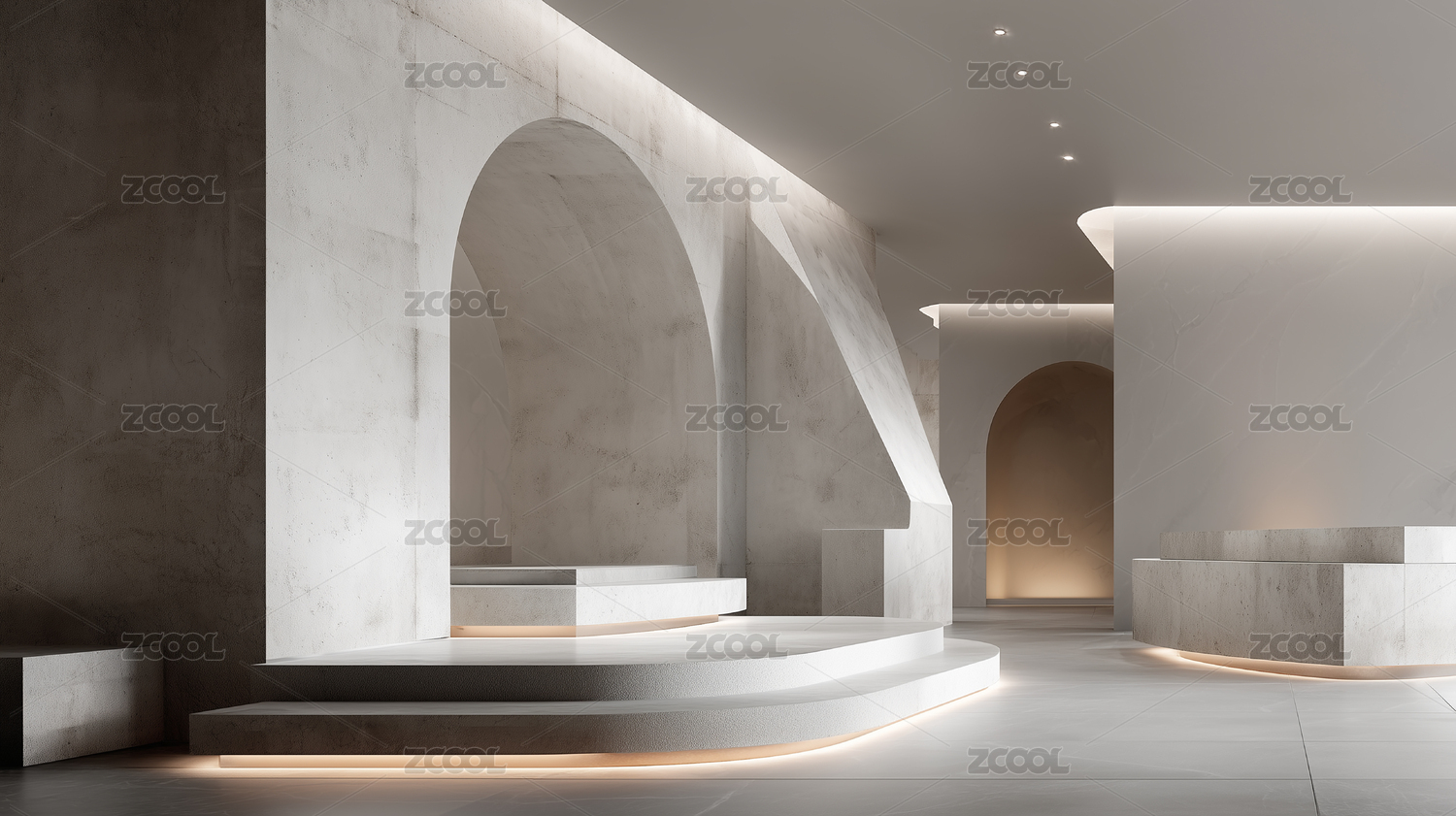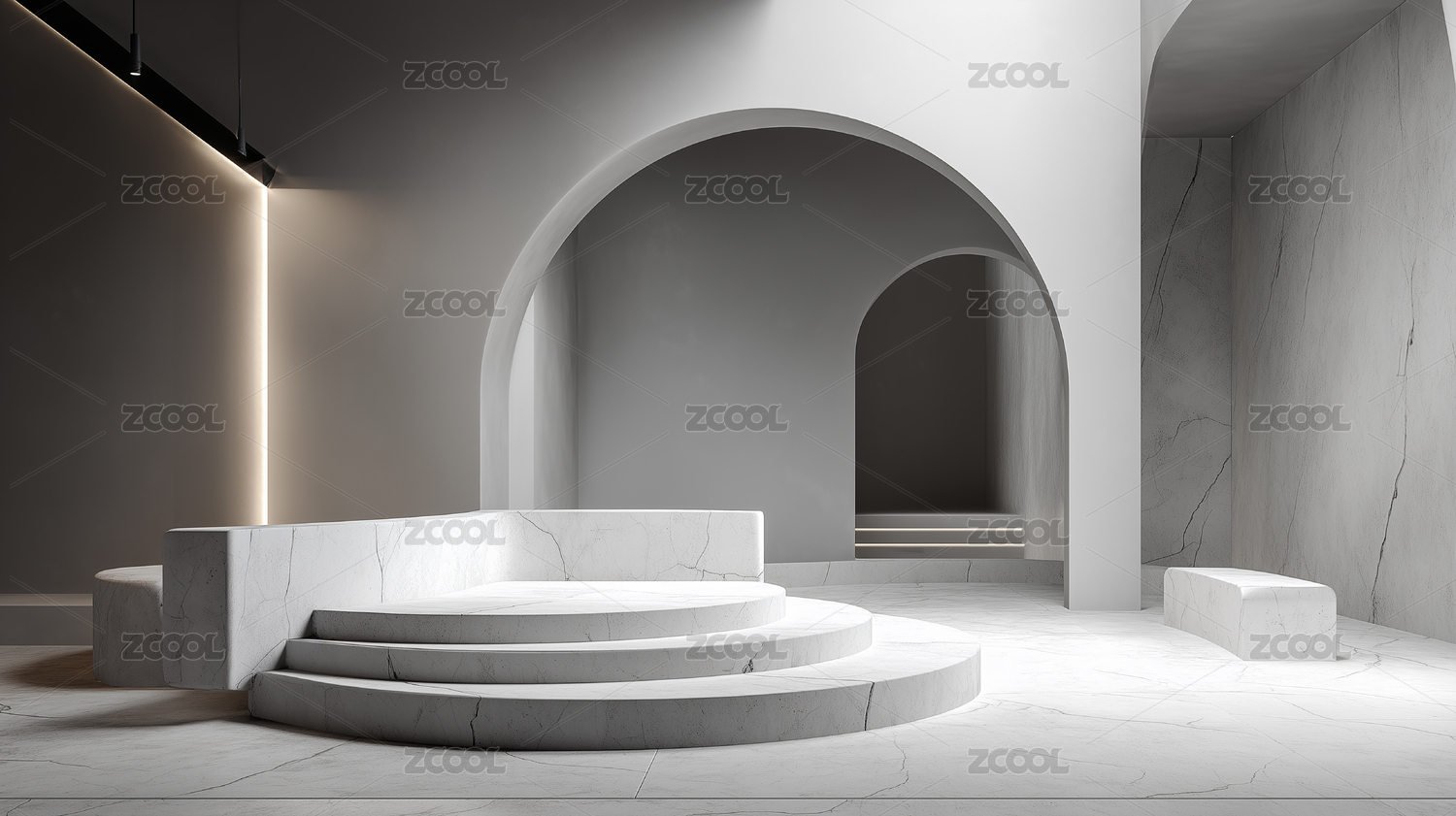 室内,单色,极简,台座,石材,白色,哑光,墙面,拱形,灰色