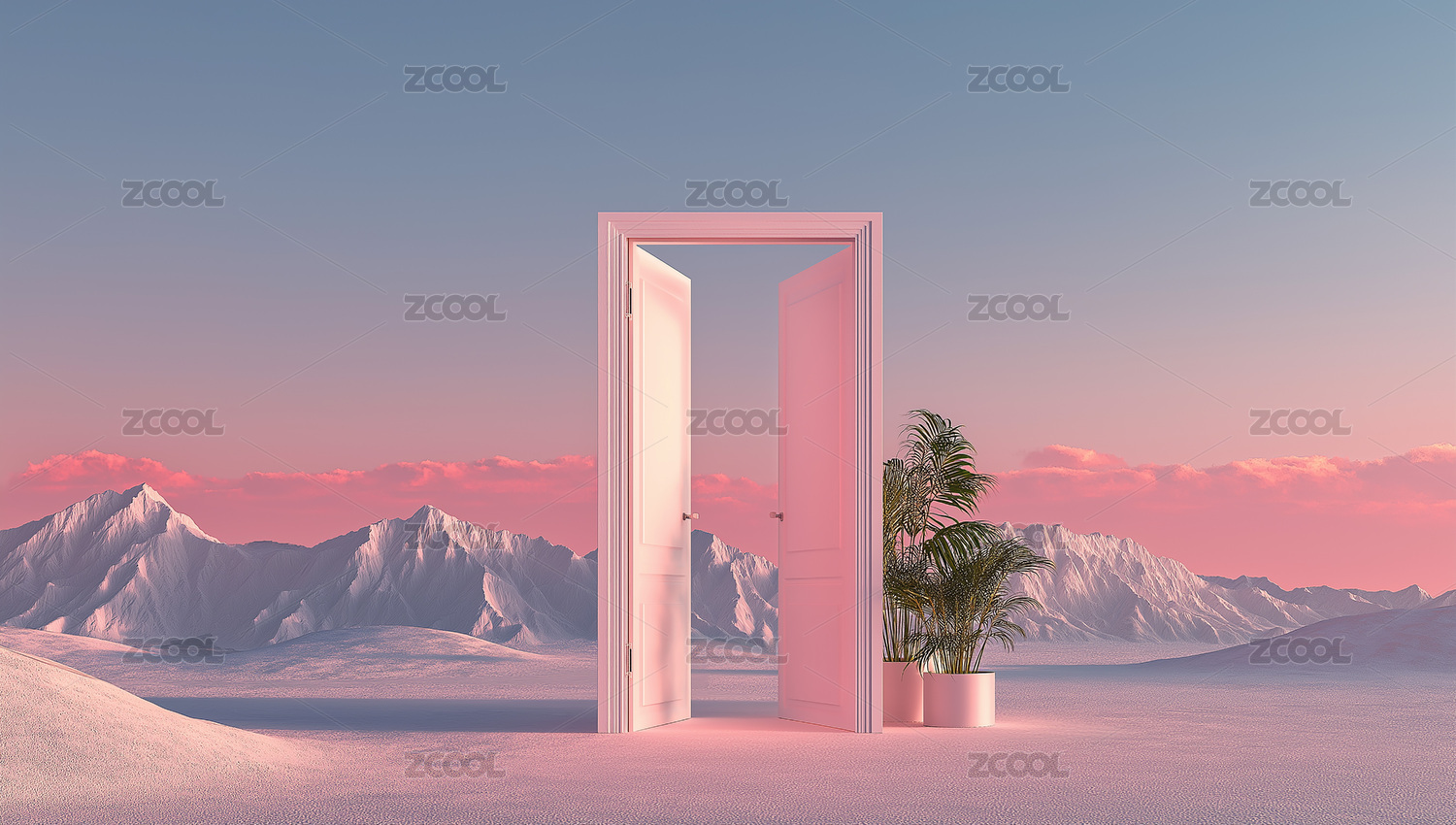 在粉色沙丘上开启的门