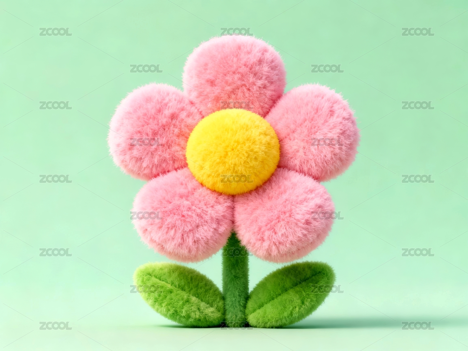 3D羊毛毡毛绒绒质感菊花盆栽模型
