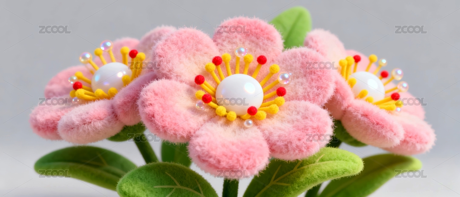 毛绒花朵可爱感装饰展示场景