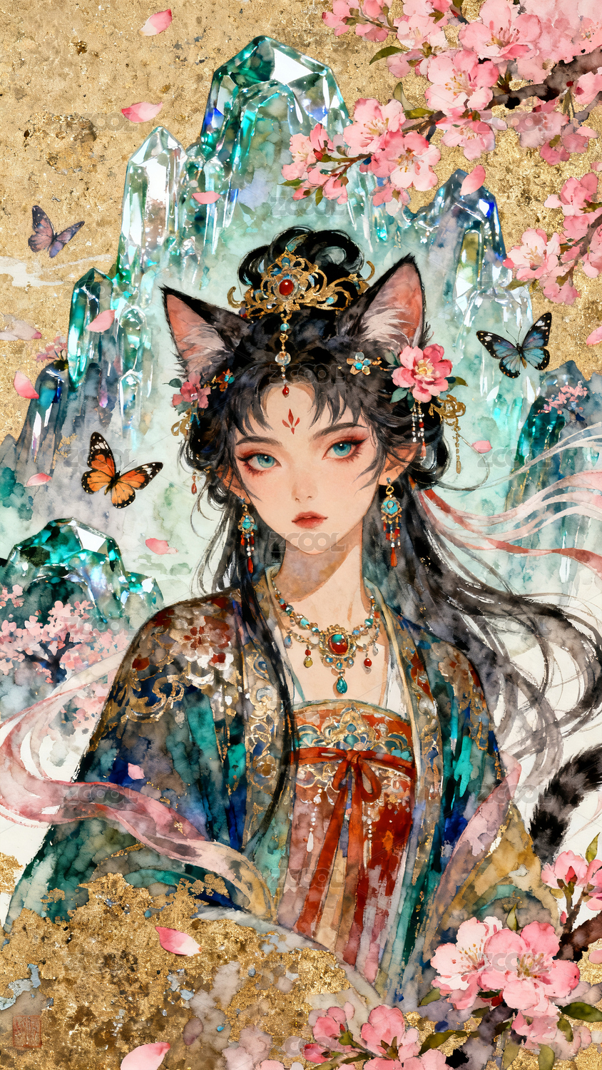 美丽灵动乖巧的的古装猫妖女子