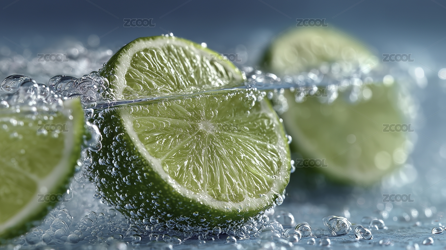 主视觉,商业,壁纸,场景,质感,青柠,切片,饮品,制作,冰块