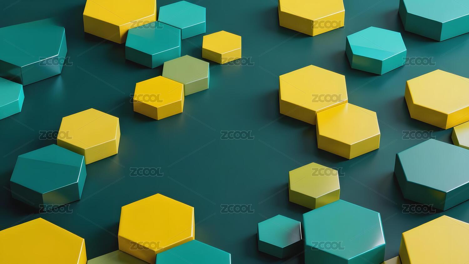 数码蓝绿色马赛克六边形几何背景