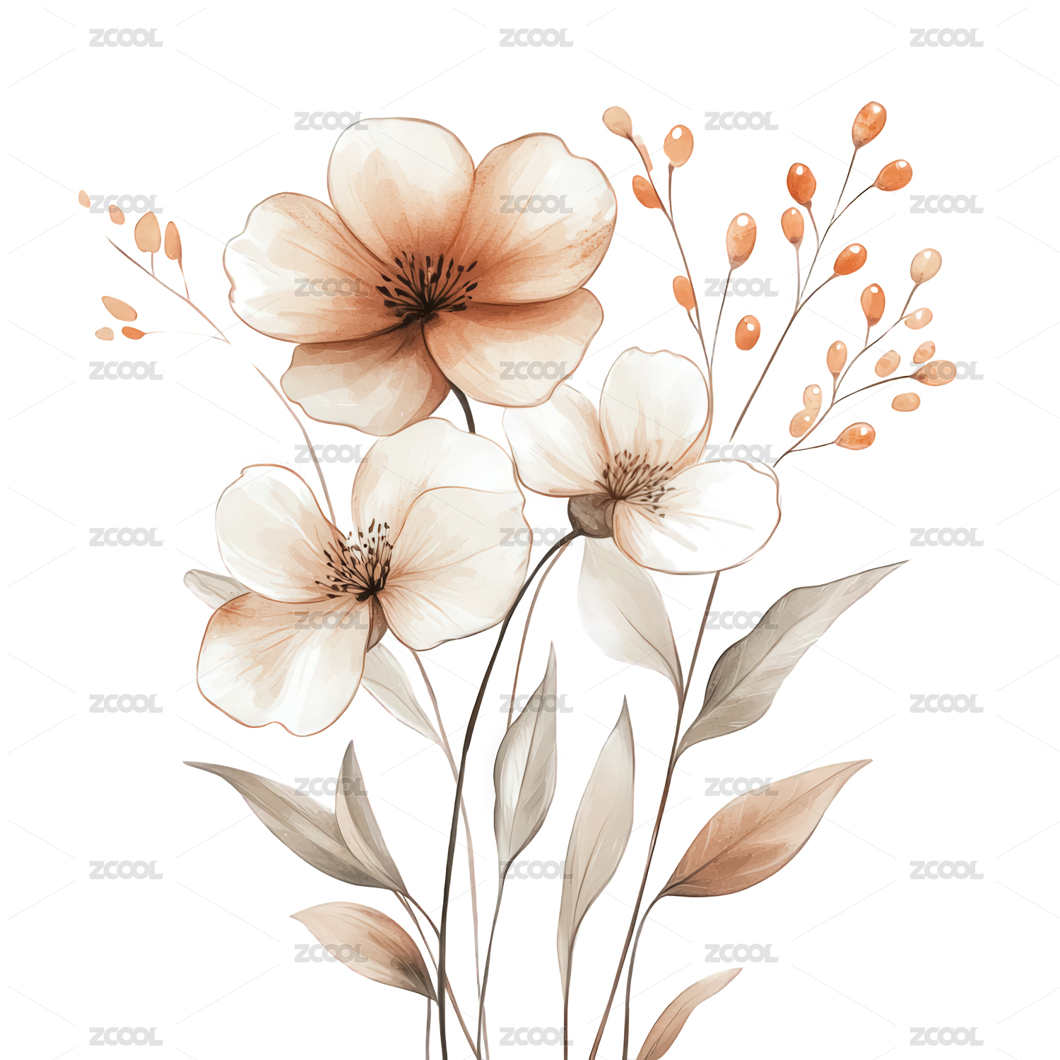 花卉,黄色,小花,花蕾,植物,水彩,风格,水彩画,绿叶,罂粟花