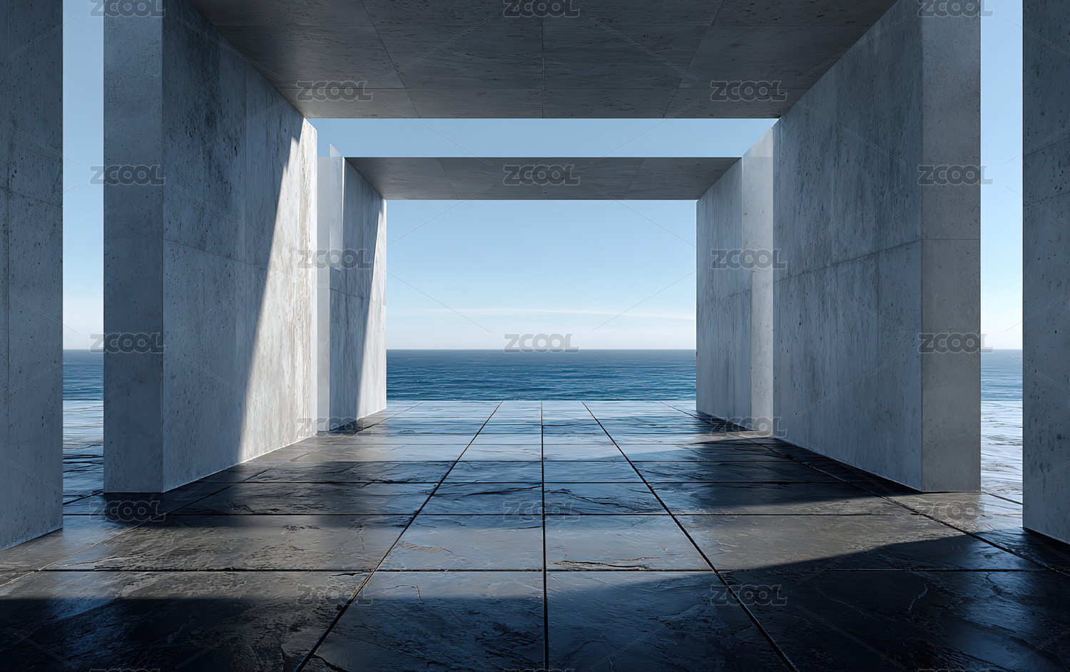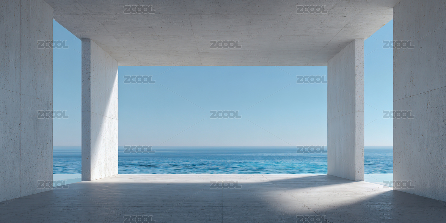 蓝天,开阔,简洁,现代,建筑,户外,自然,几何,光影,空间