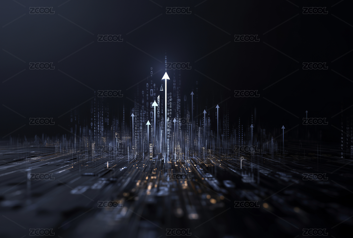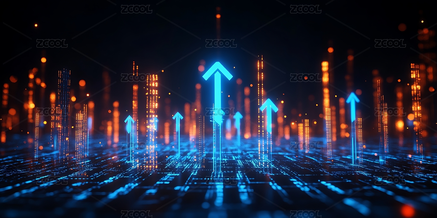 金黄色发光箭头与数据流穿梭于黑暗之中