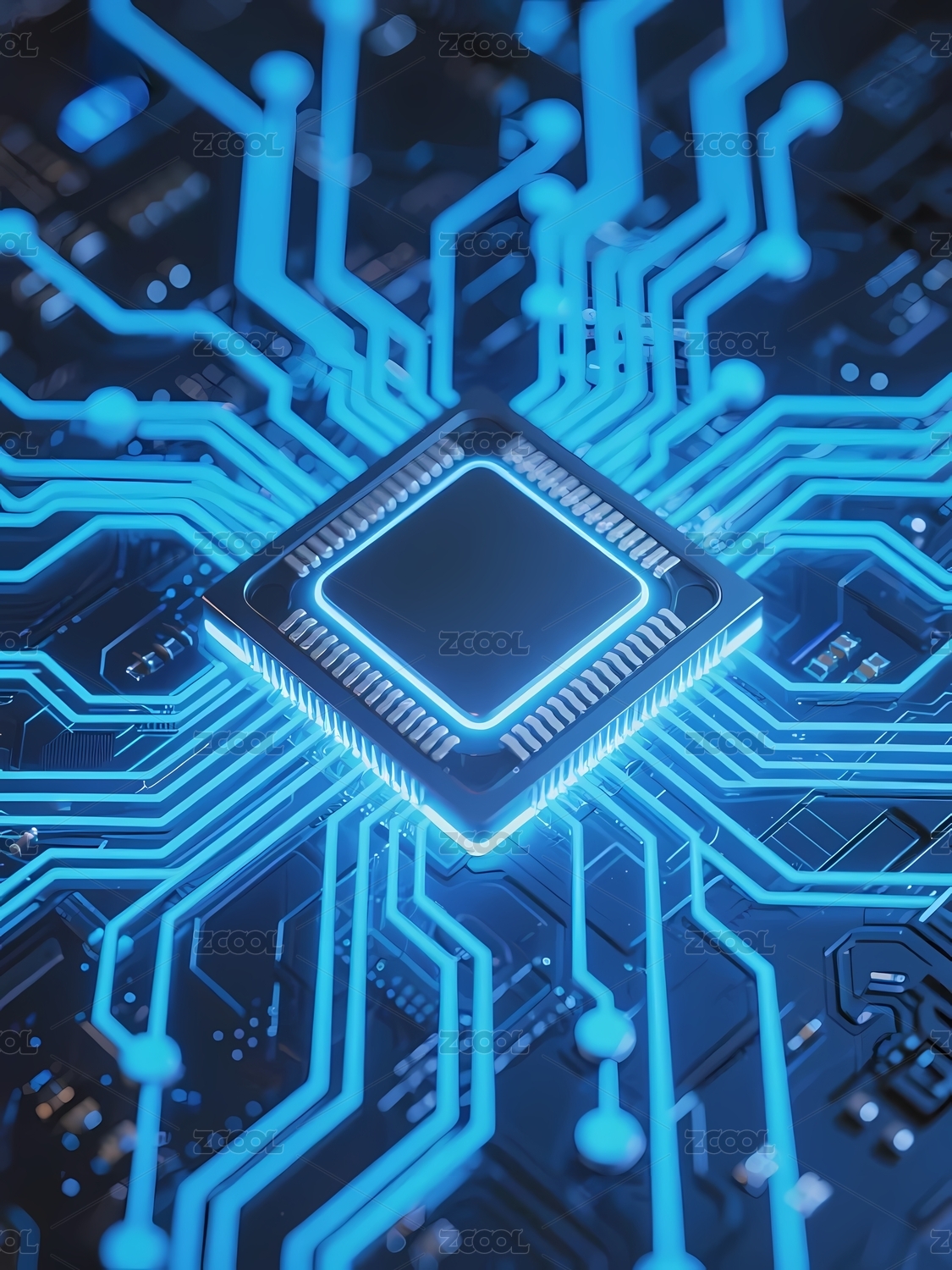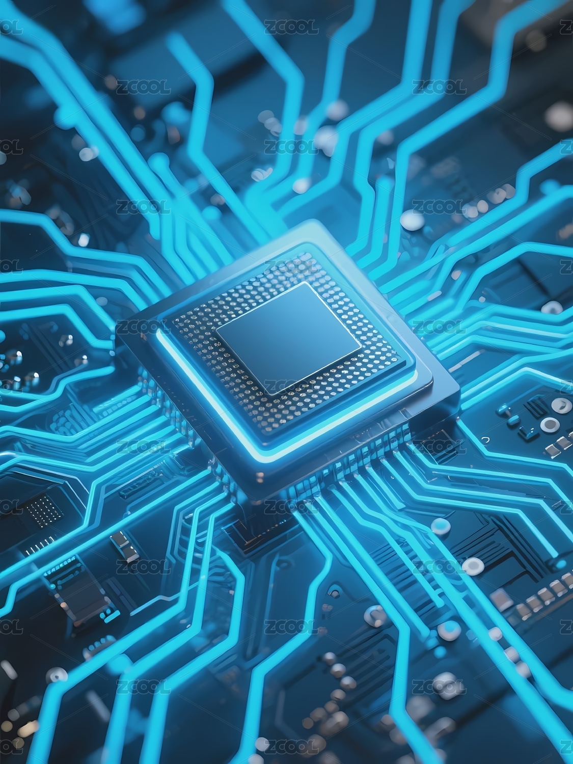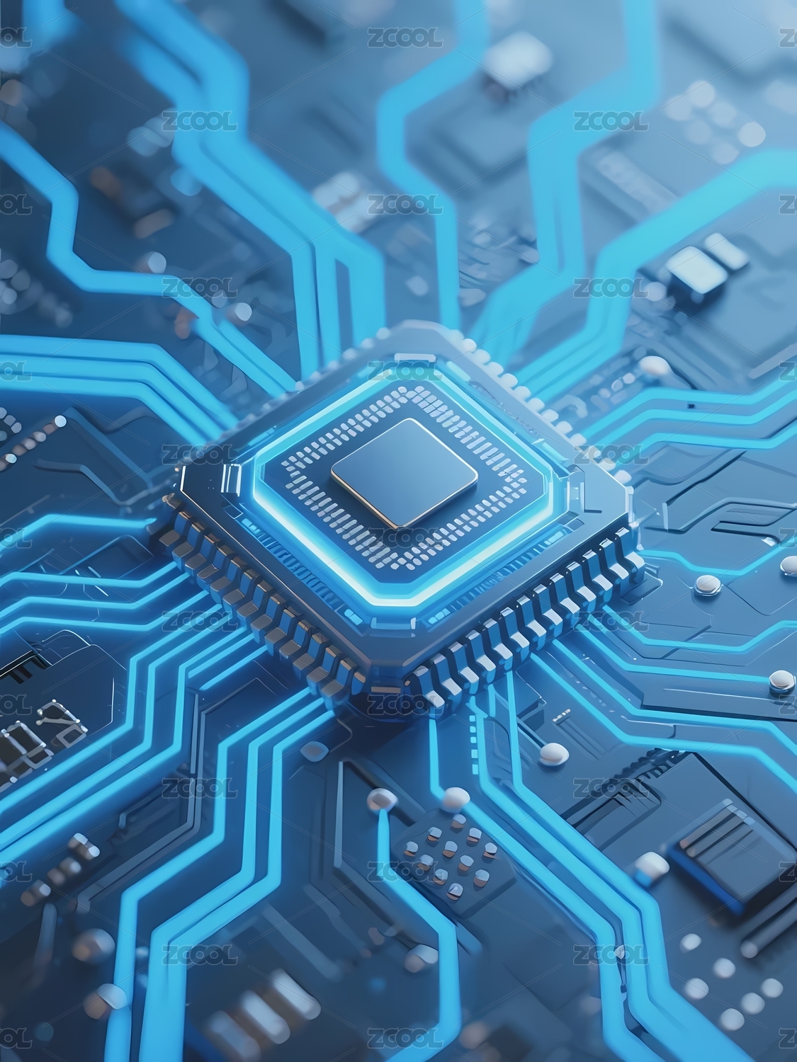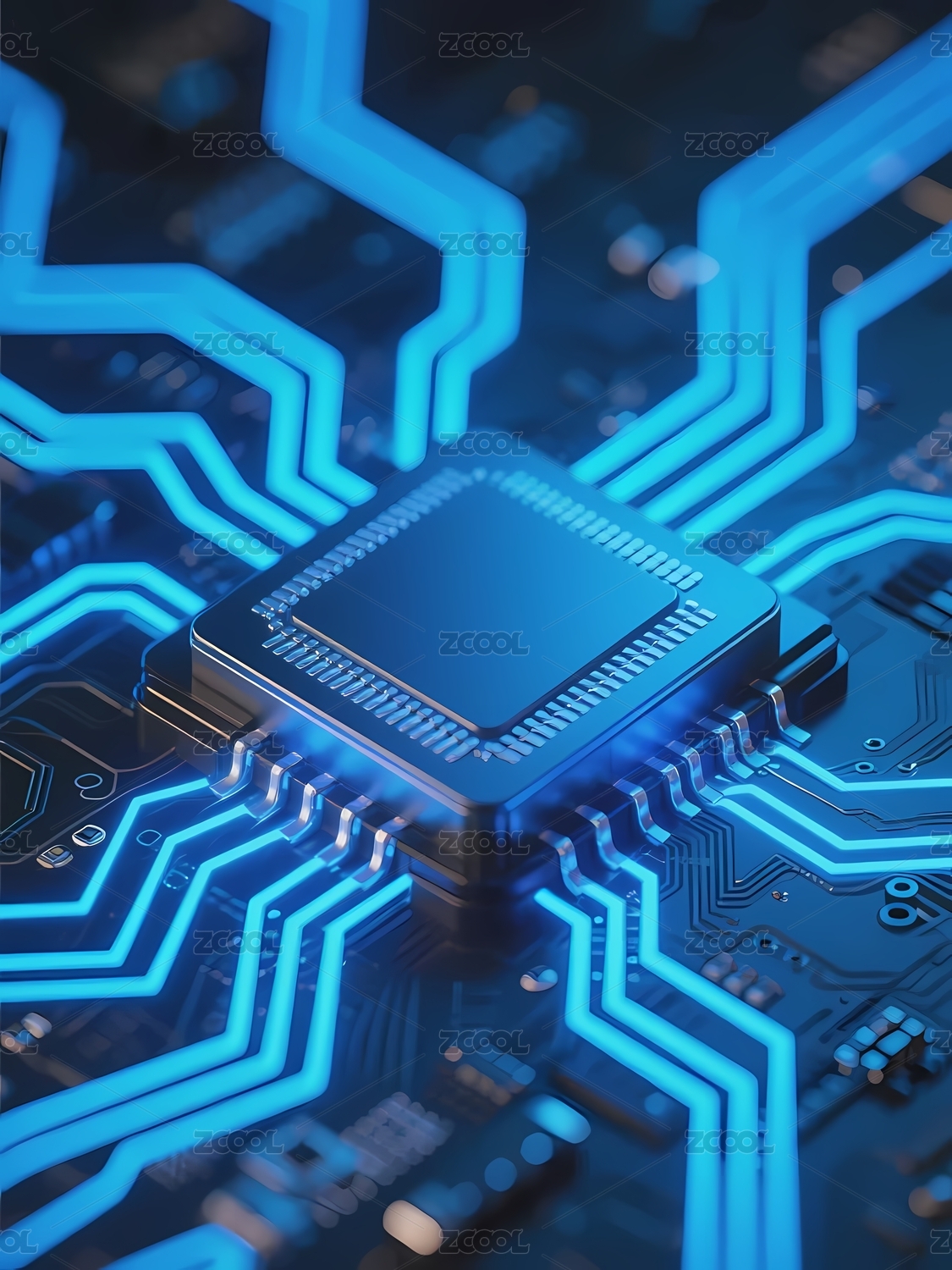 芯片,蓝色,科技,电子,现代,精密,硬件,连接,数据,处理