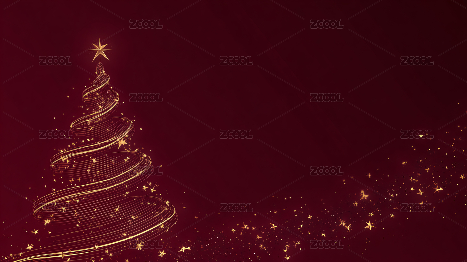 红色背景的金色圣诞树图