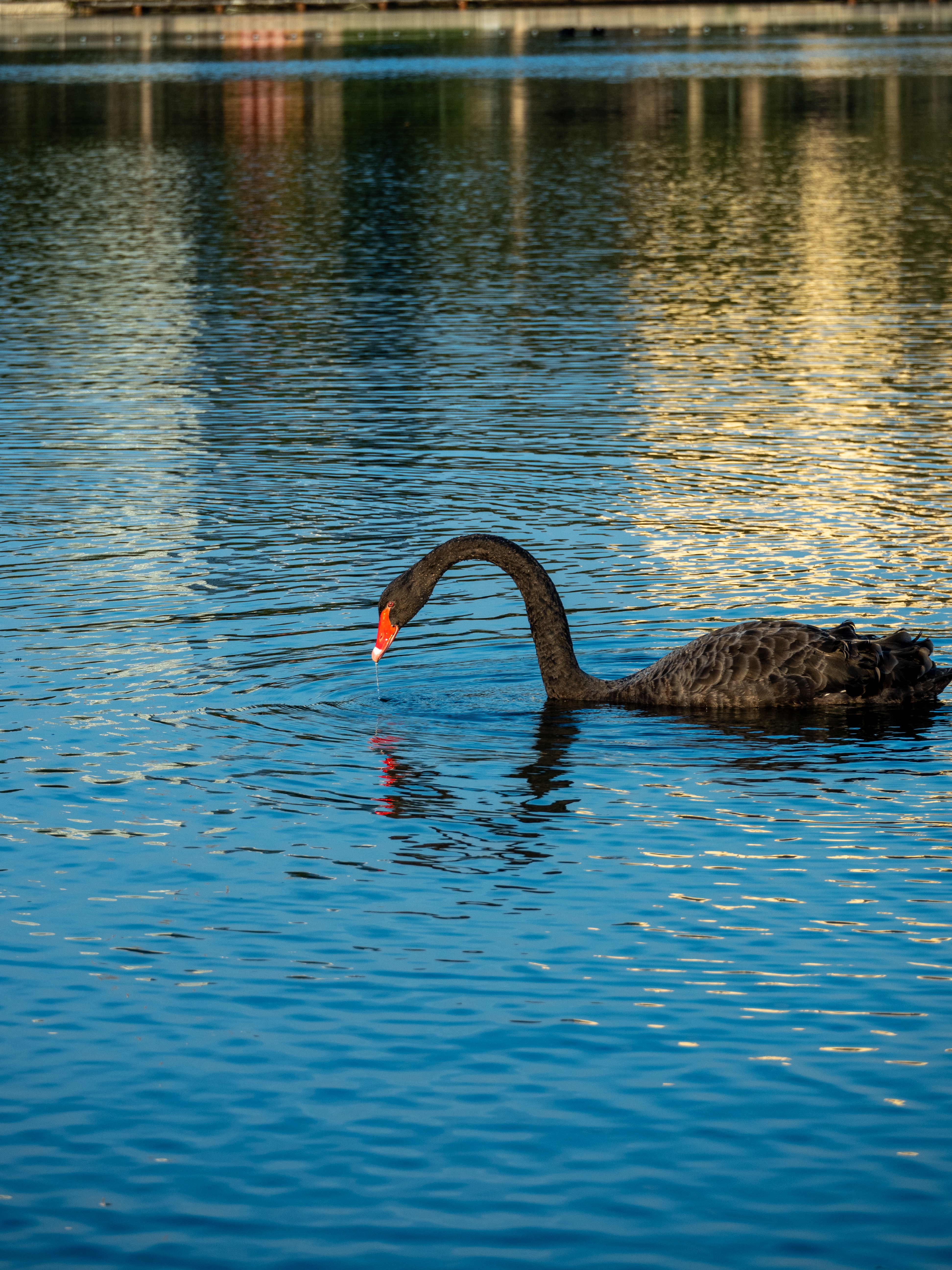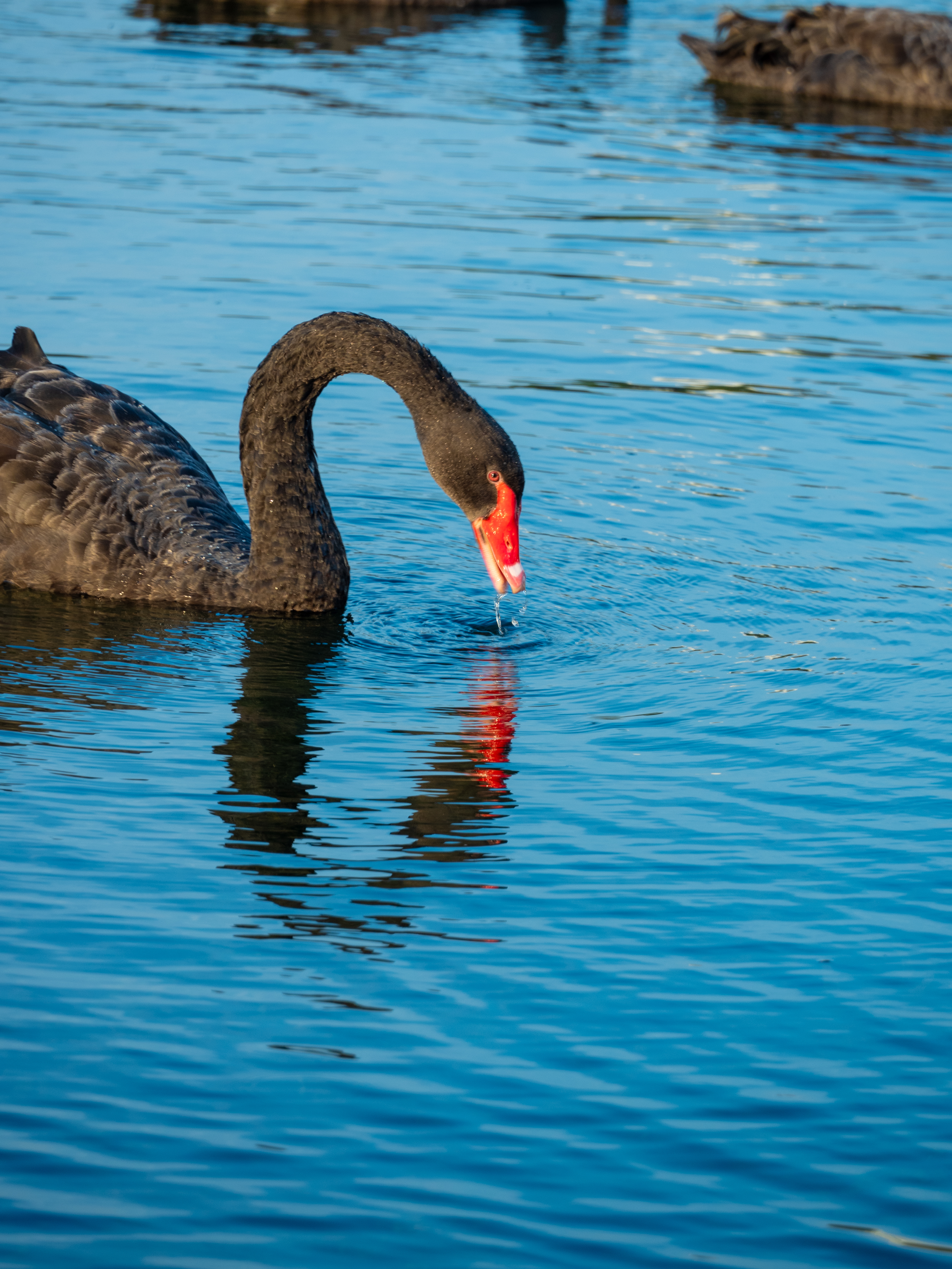 黑天鹅,水面,波纹,倒影,红色喙,羽毛,湖水,动物,自然,水域