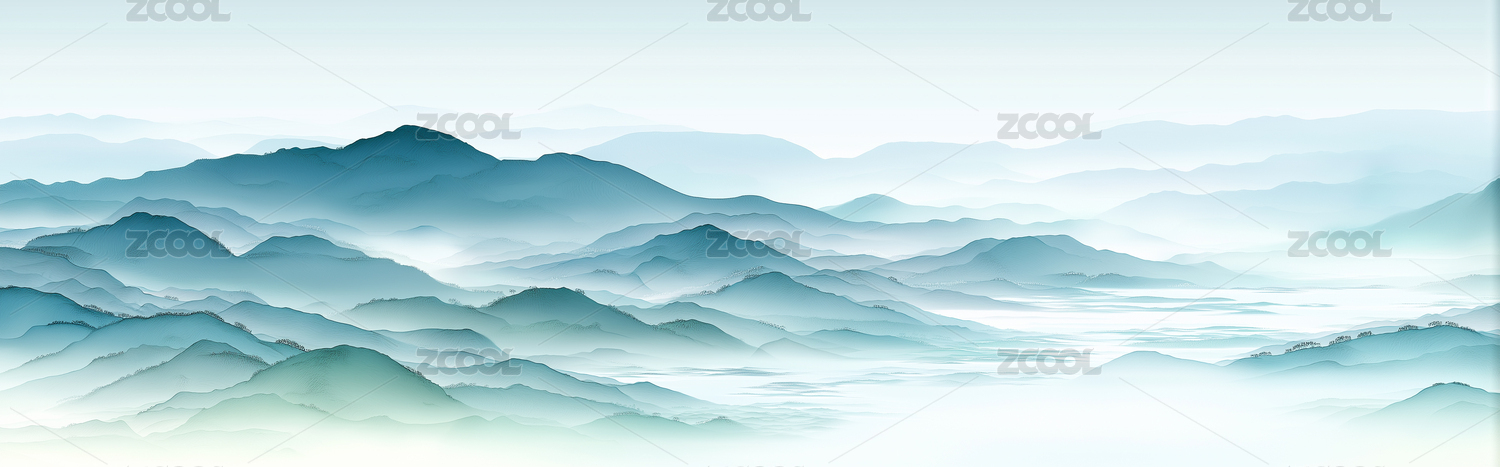 山水,山脉,云雾,传统,风格,自然,风光,国画,色彩,斑斓