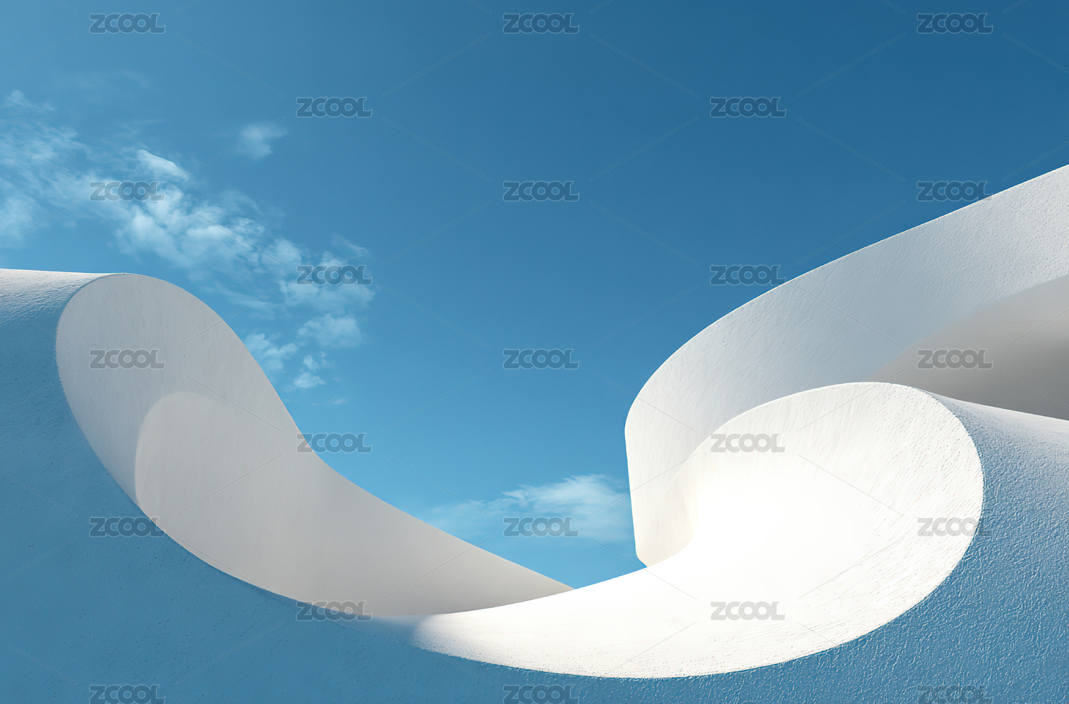 白色曲线雕塑与蓝天
