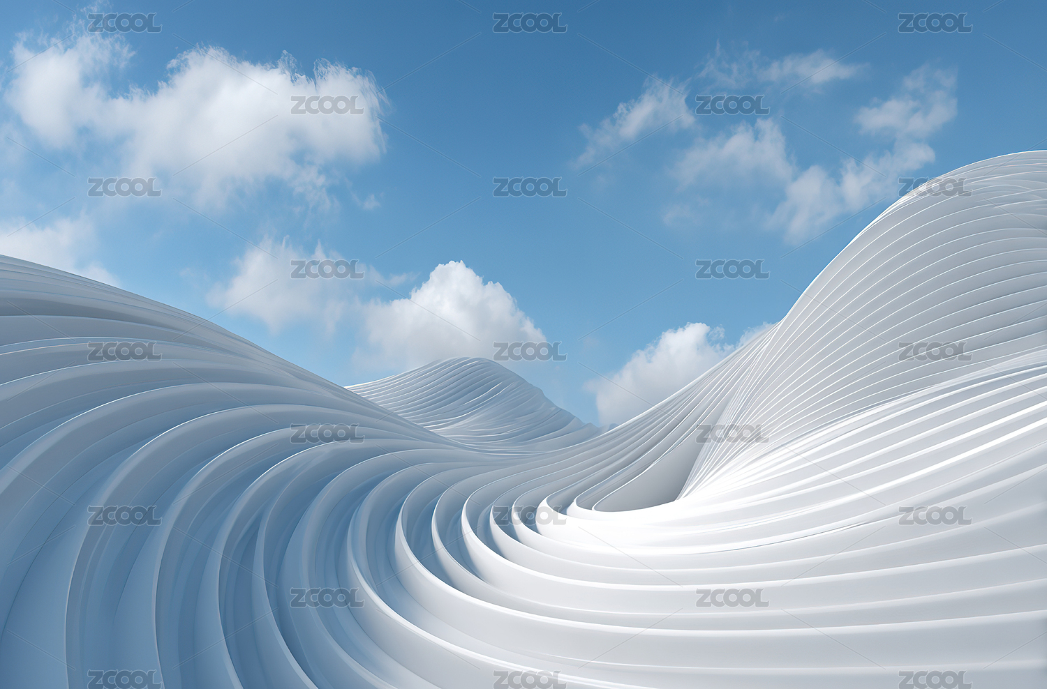 白色波浪结构与蓝天白云