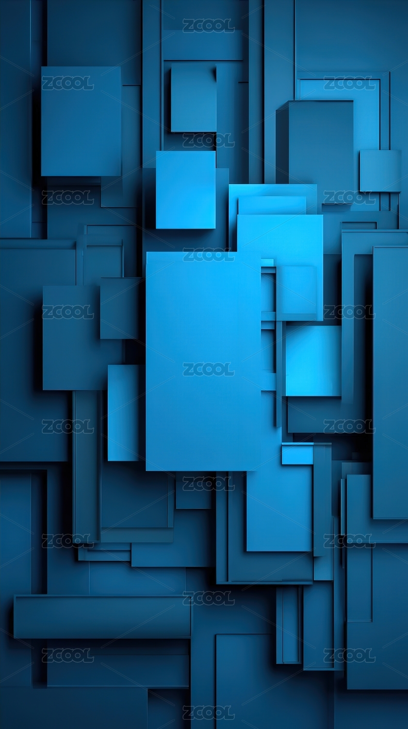 立体几何方块蓝色渐变背景