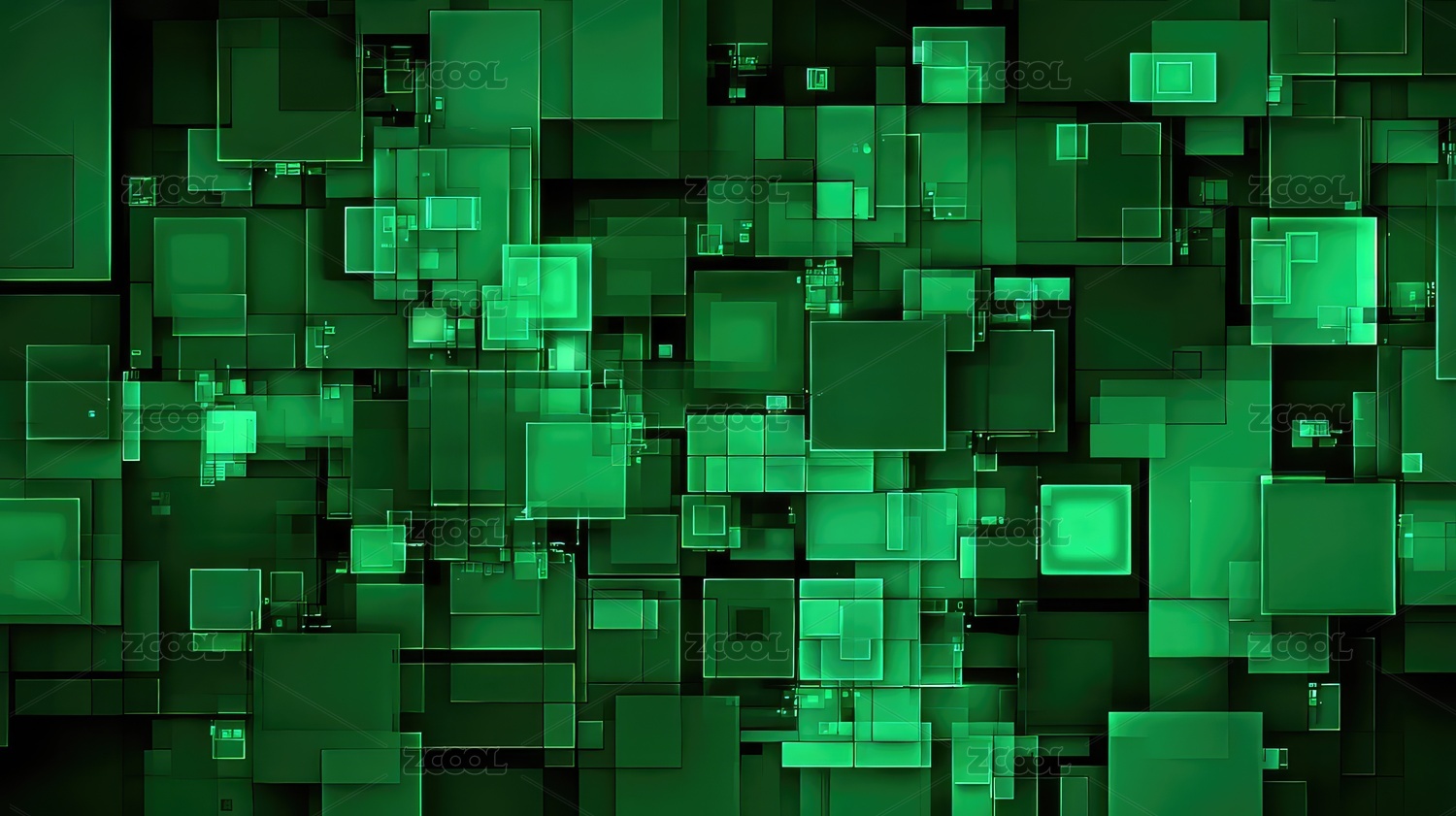 绿色方块叠加的科技感背景