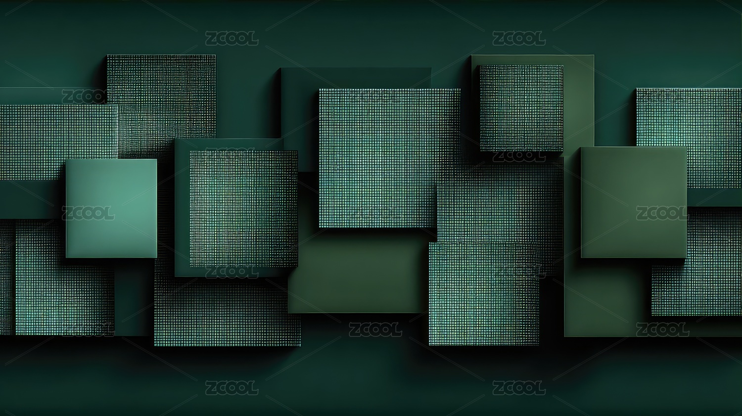 几何方块堆叠组成的绿色背景