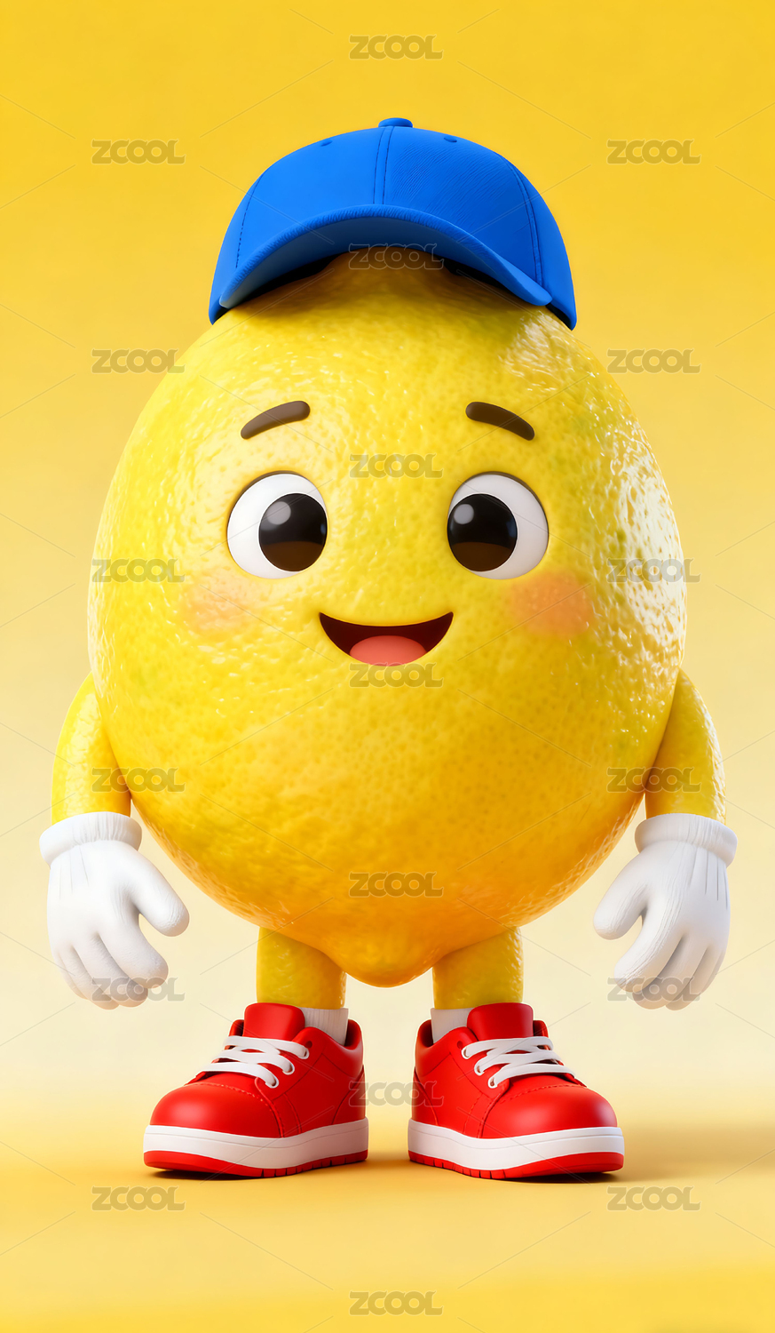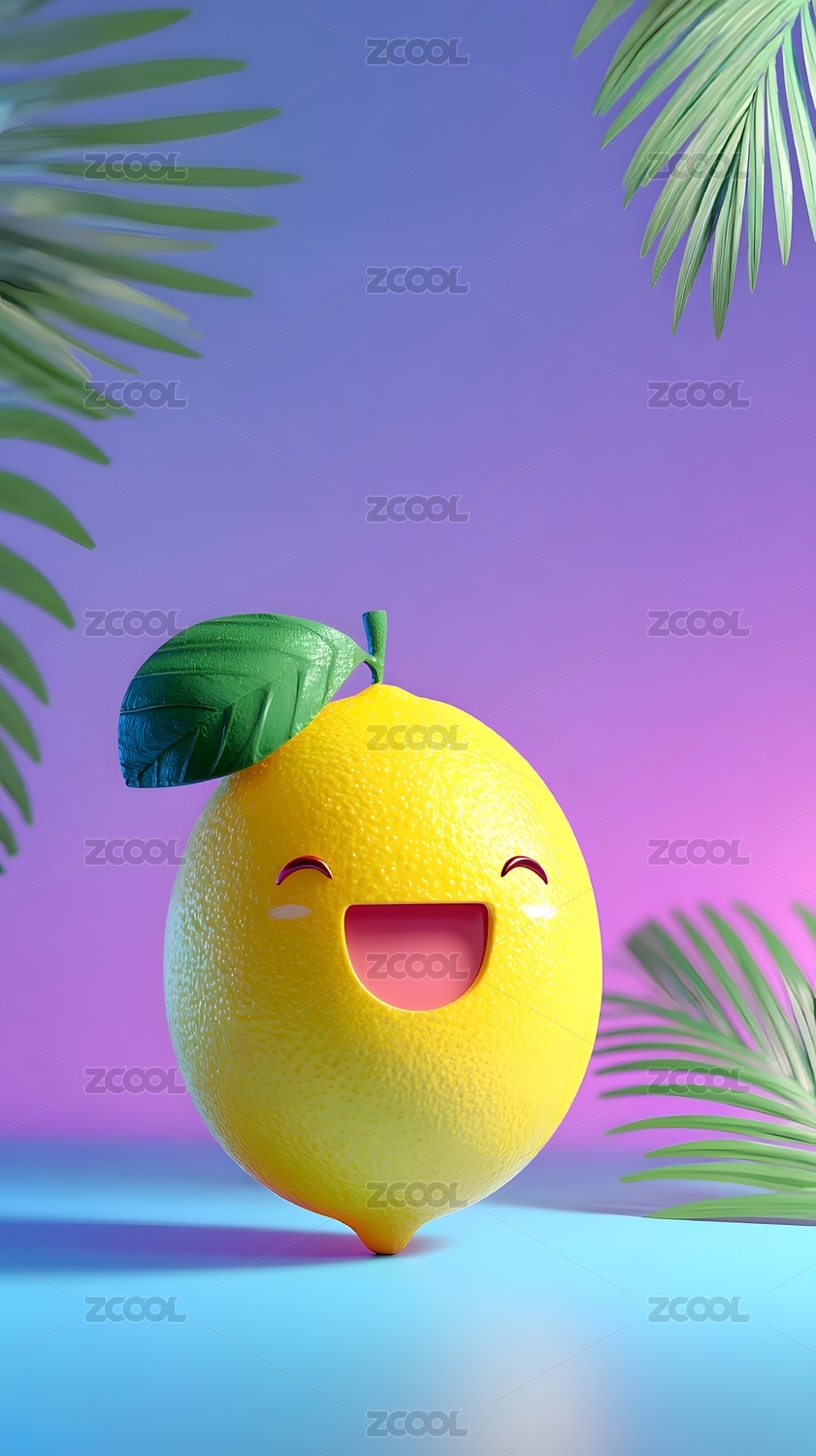3D,立体,卡通,拟人,水果,插画,柠檬