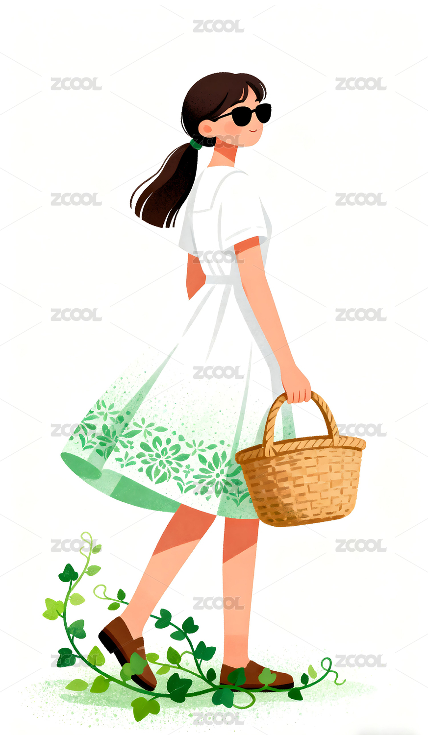 扁平风格卡通时尚女孩插画素材