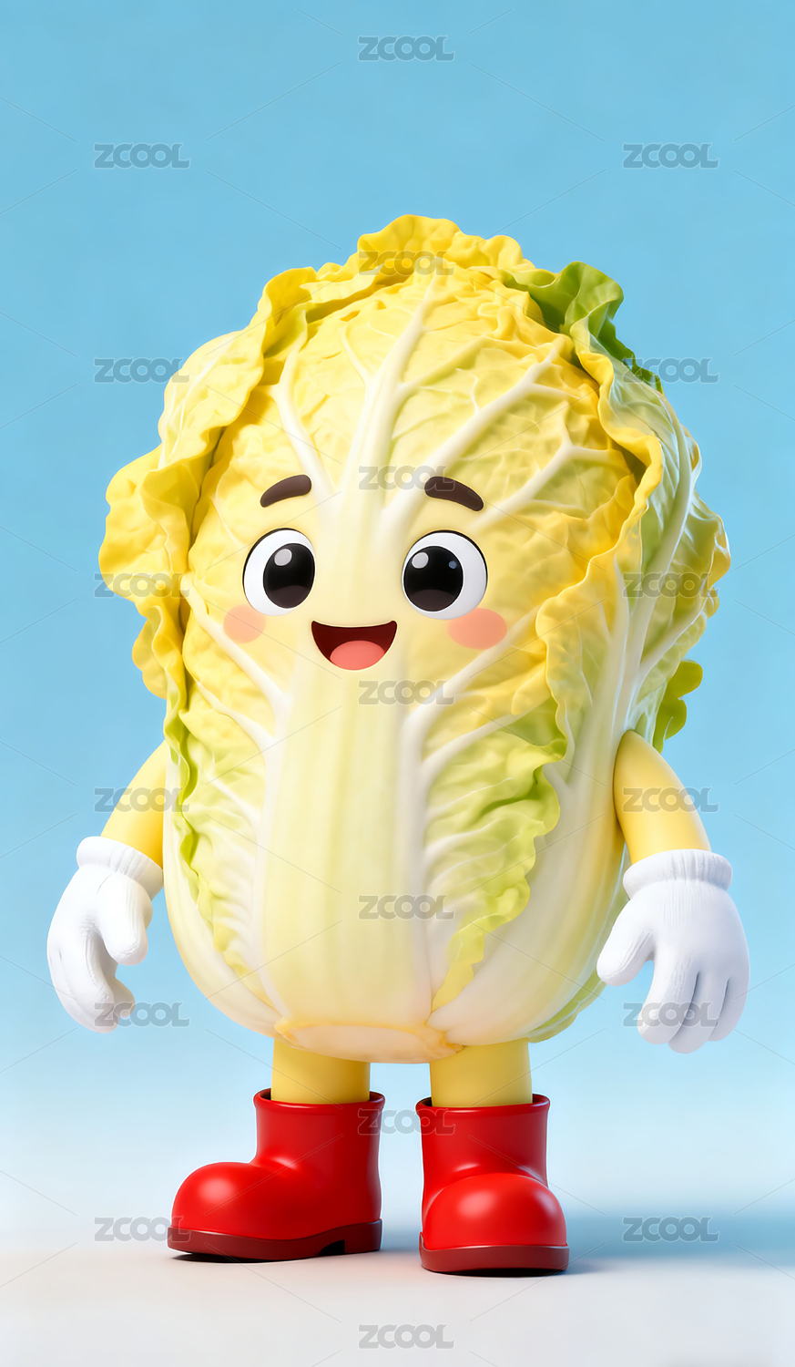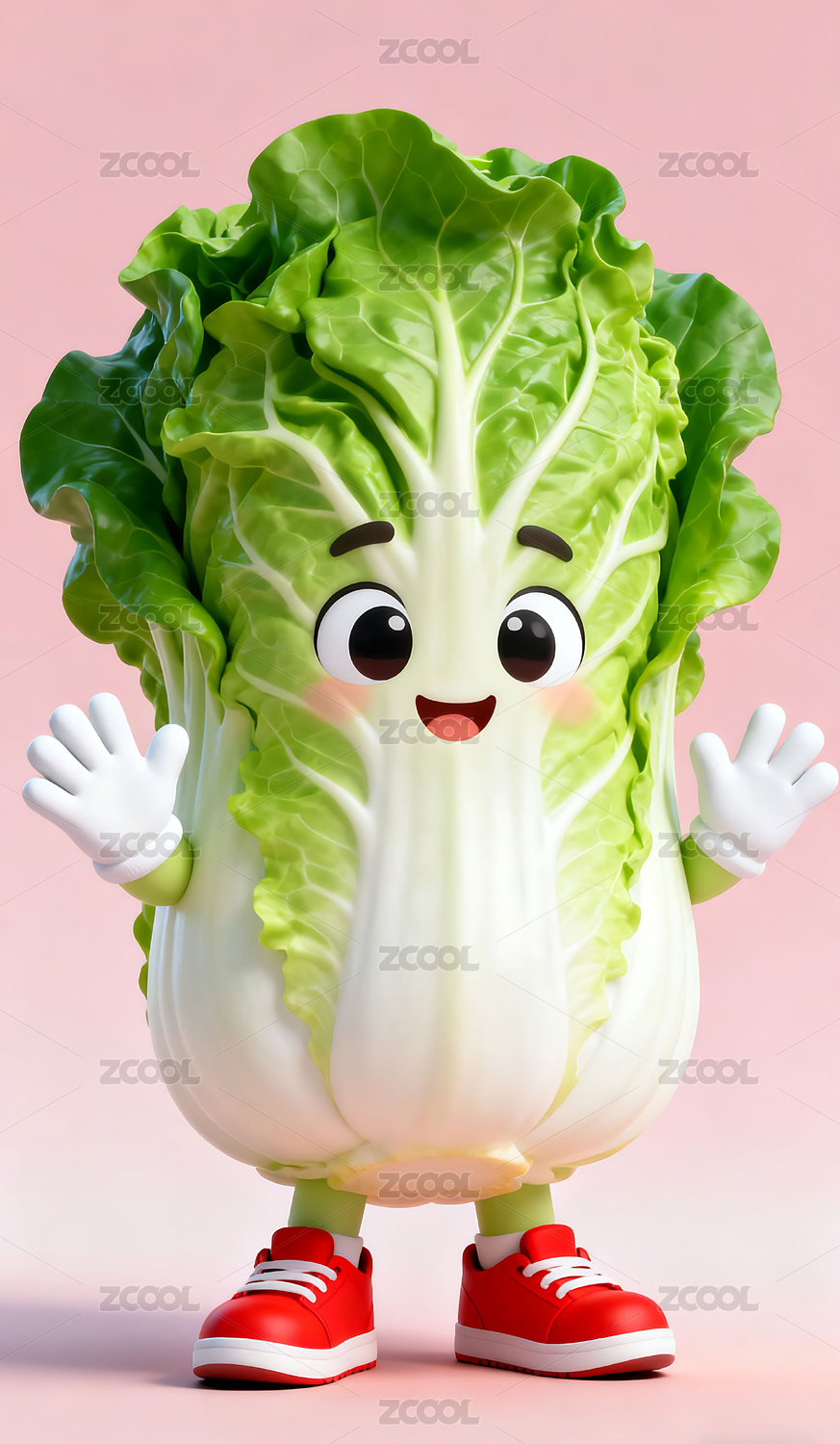 3D,立体,卡通,拟人,插画,蔬菜,白菜