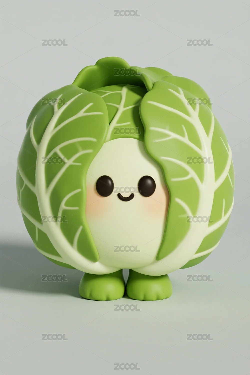 3D,立体,卡通,拟人,插画,蔬菜,白菜