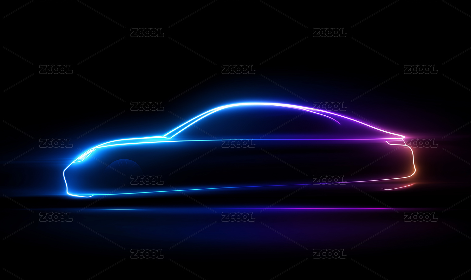 黑背景下炫彩光影勾勒的汽车轮廓图