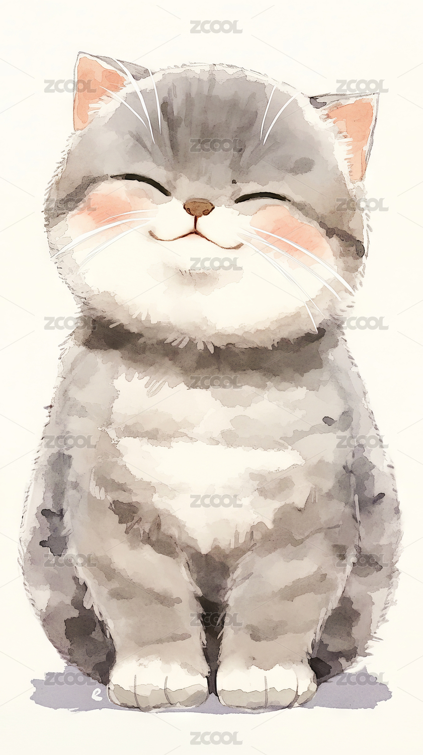 可爱猫表情贴纸时尚卡通涂鸦壁纸插画
