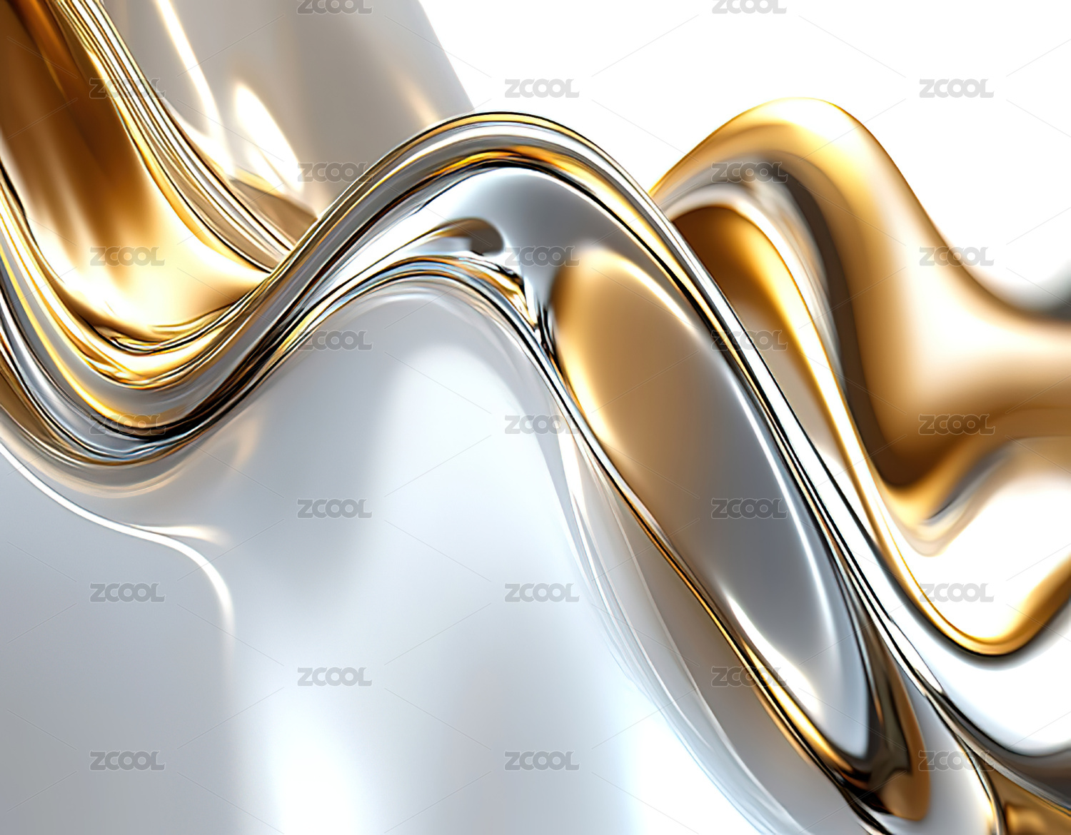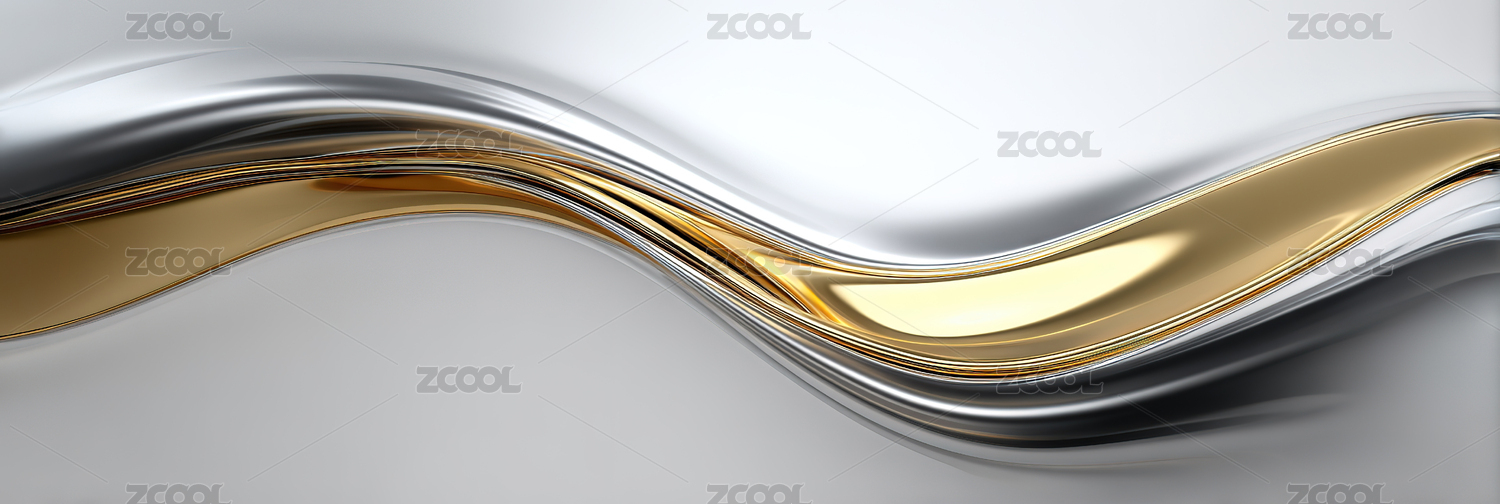 现代奢华的银色金色抽象流动形态