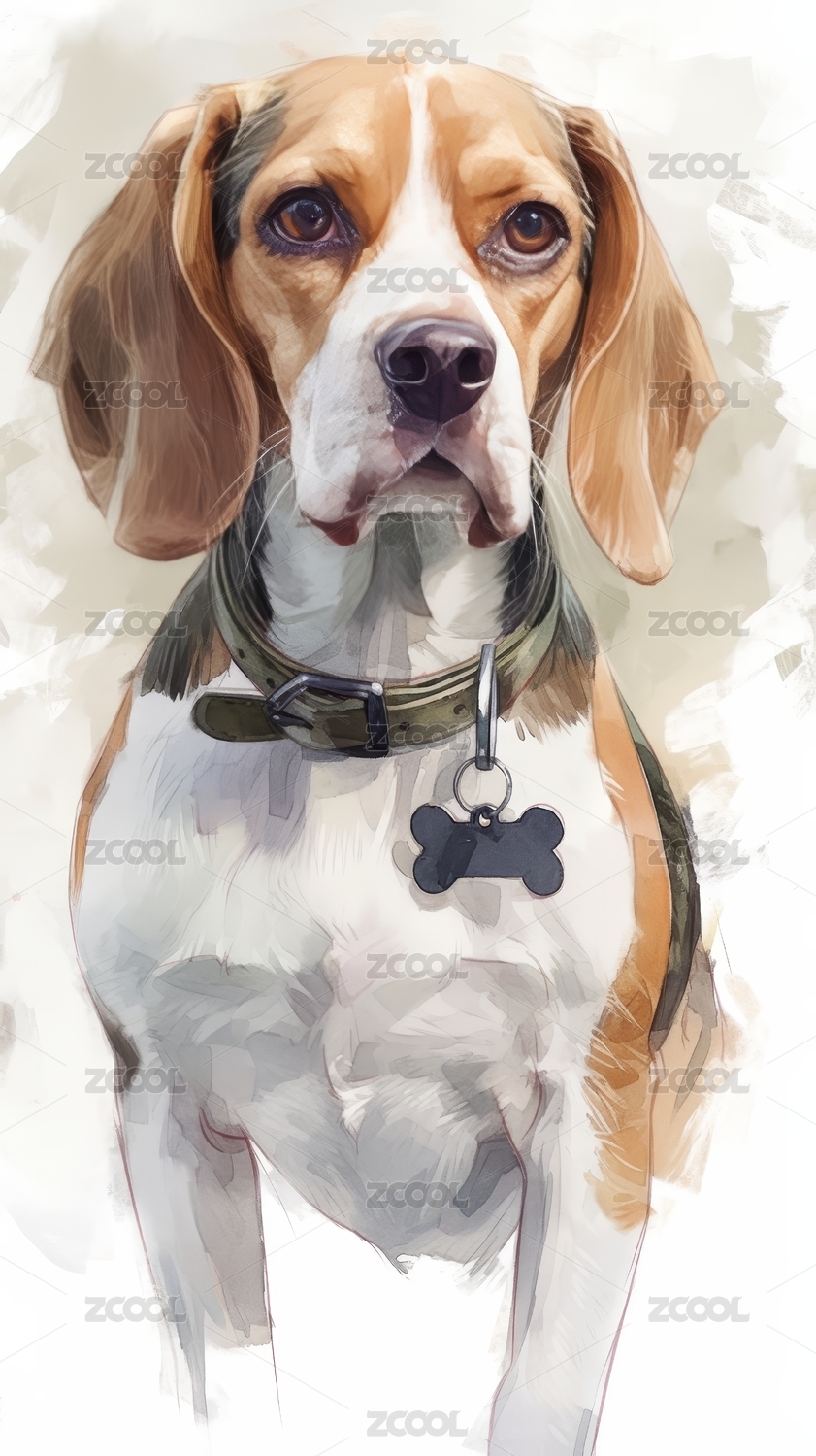 戴项圈标签的狗狗油画
