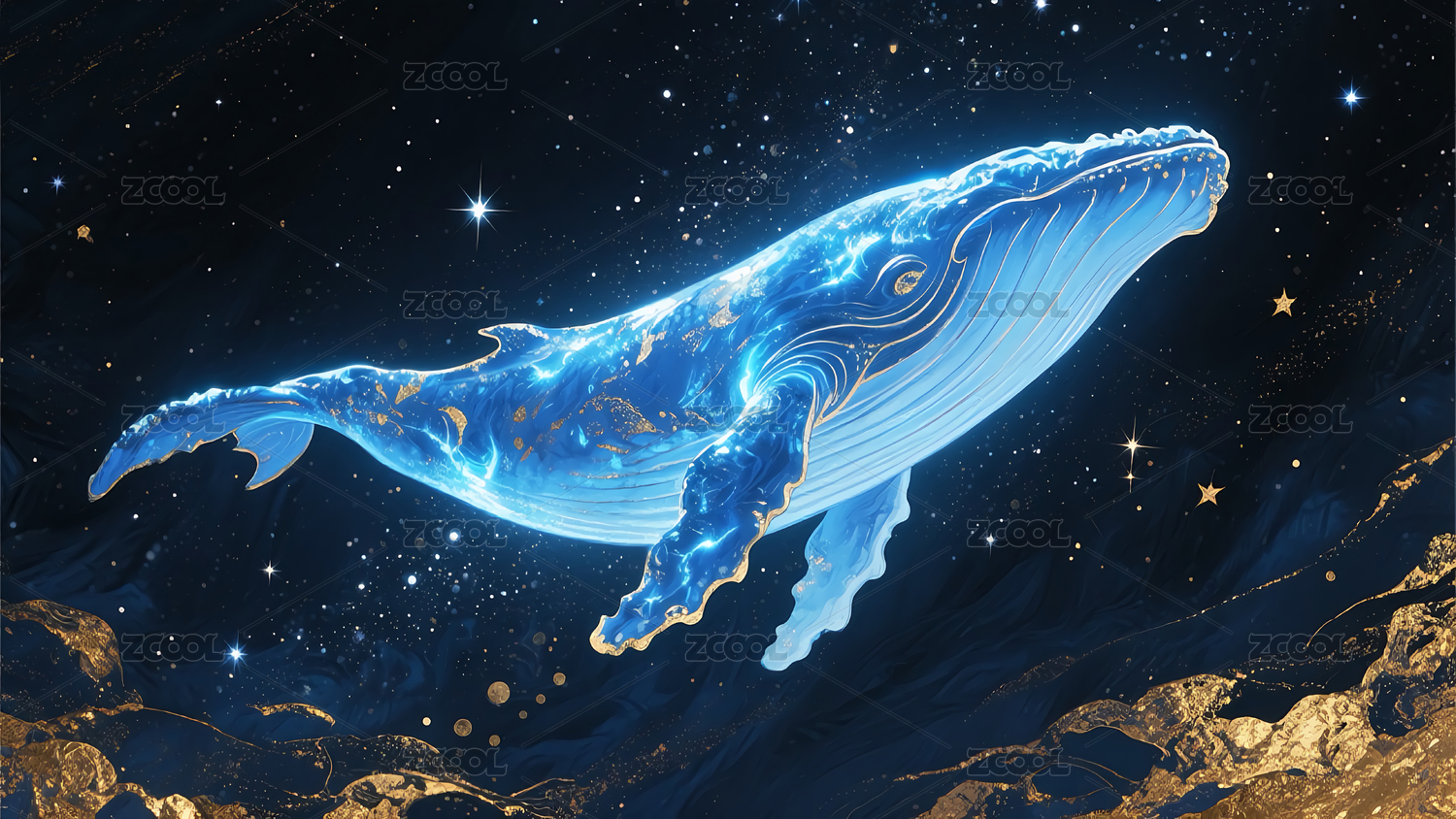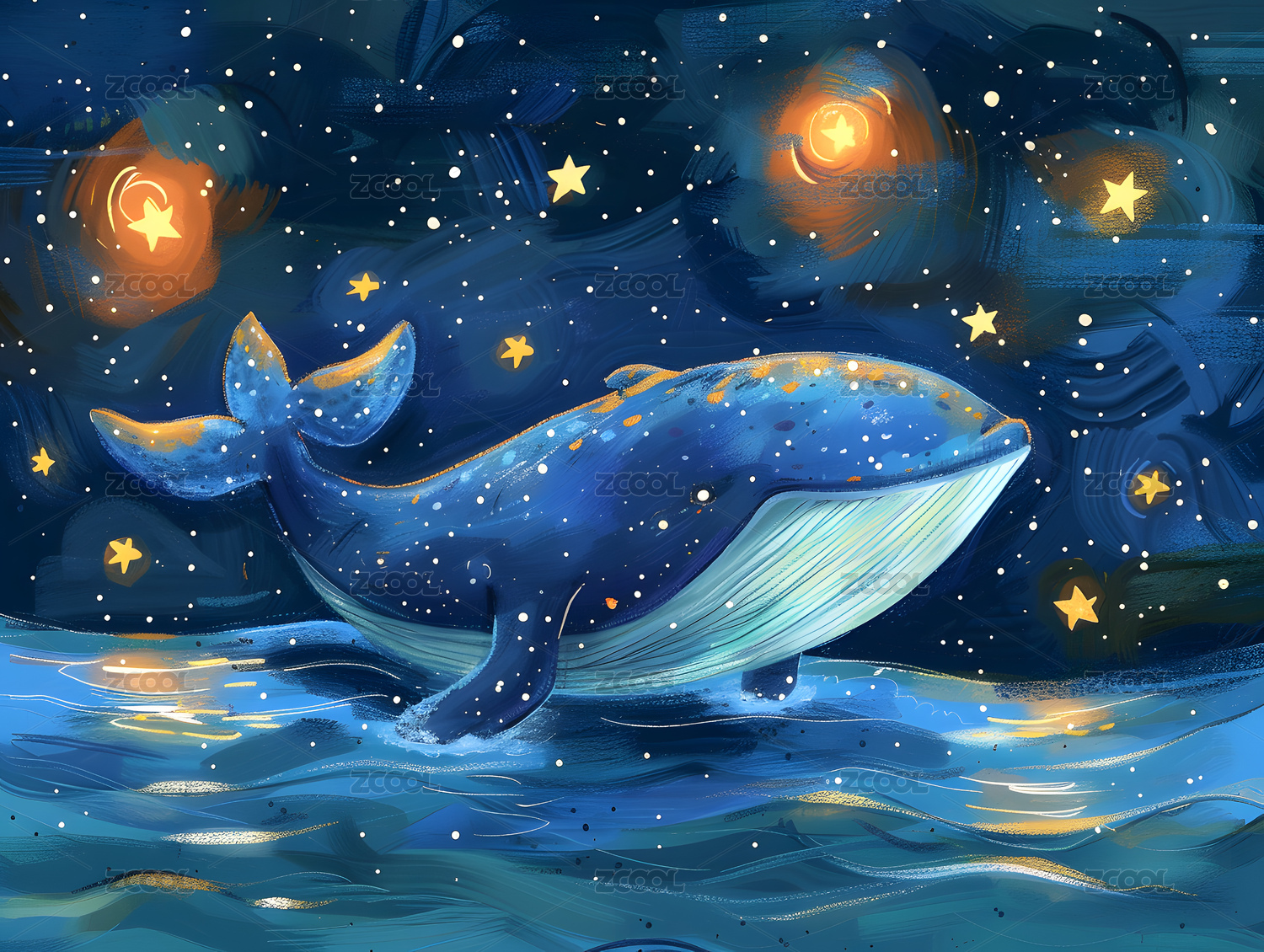 鲸鱼,星空,插画,蓝色,海洋,梦幻,艺术,唯美,生物,宇宙