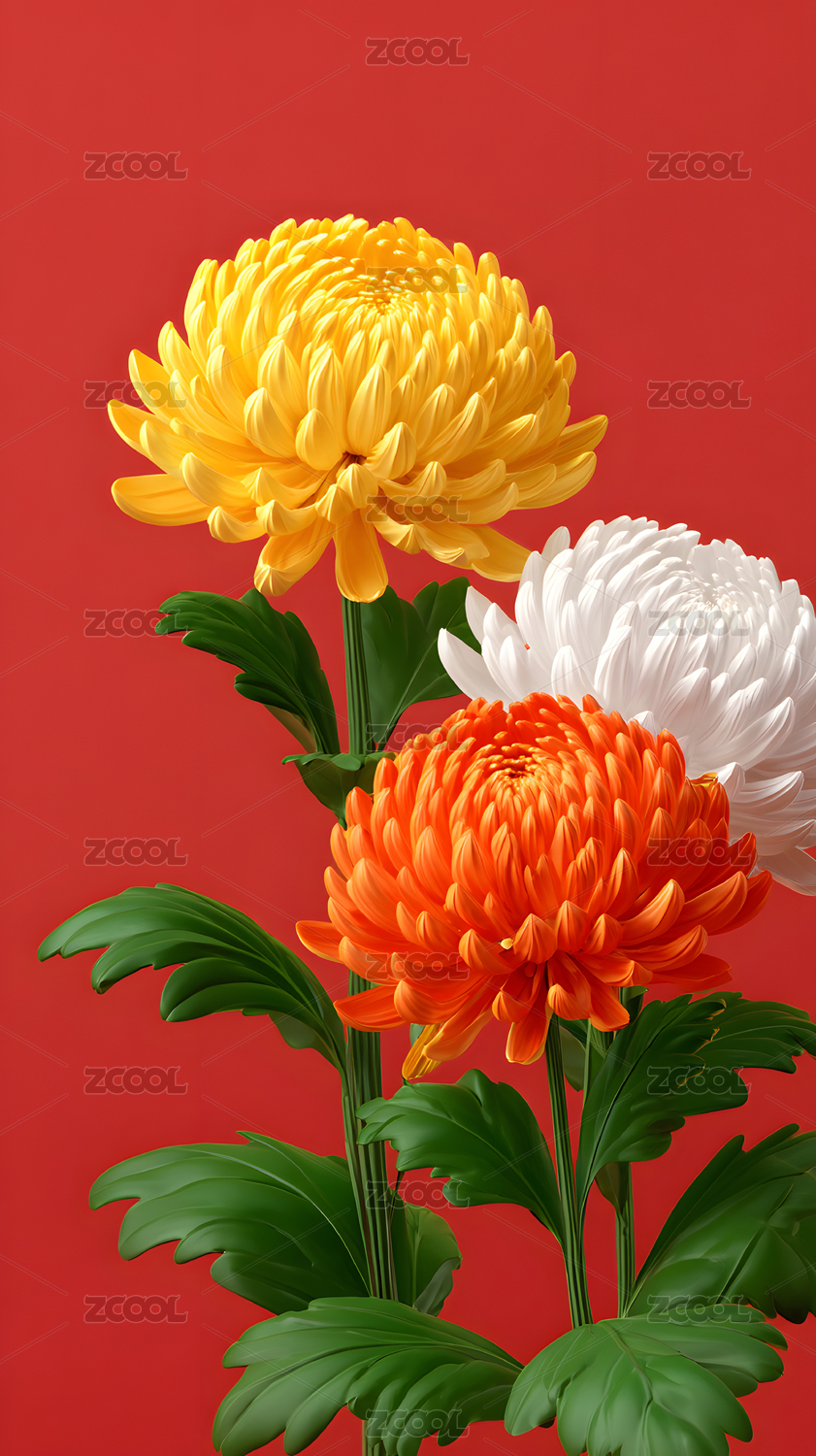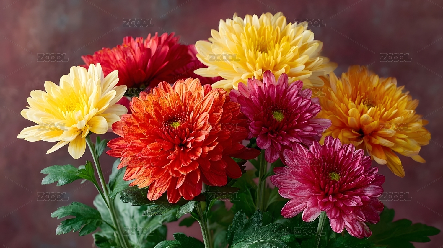 一朵颜色热情的橘黄菊花特写花瓣条纹清晰