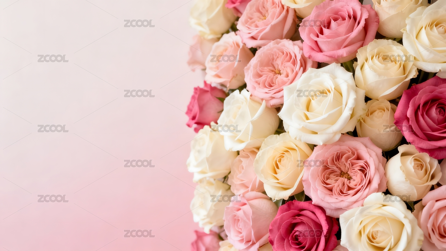 粉色玫瑰花海铺满画面一角