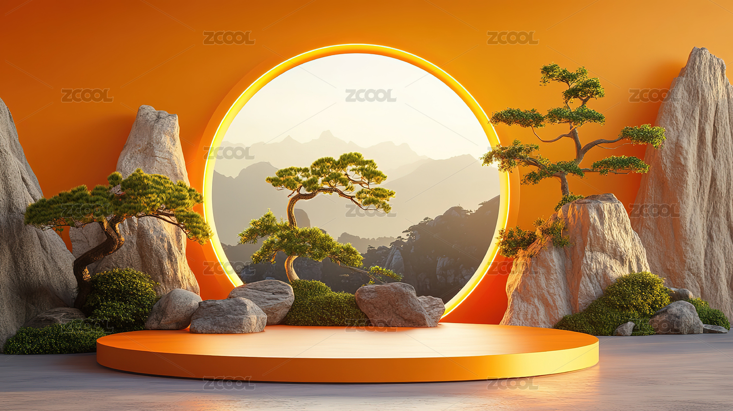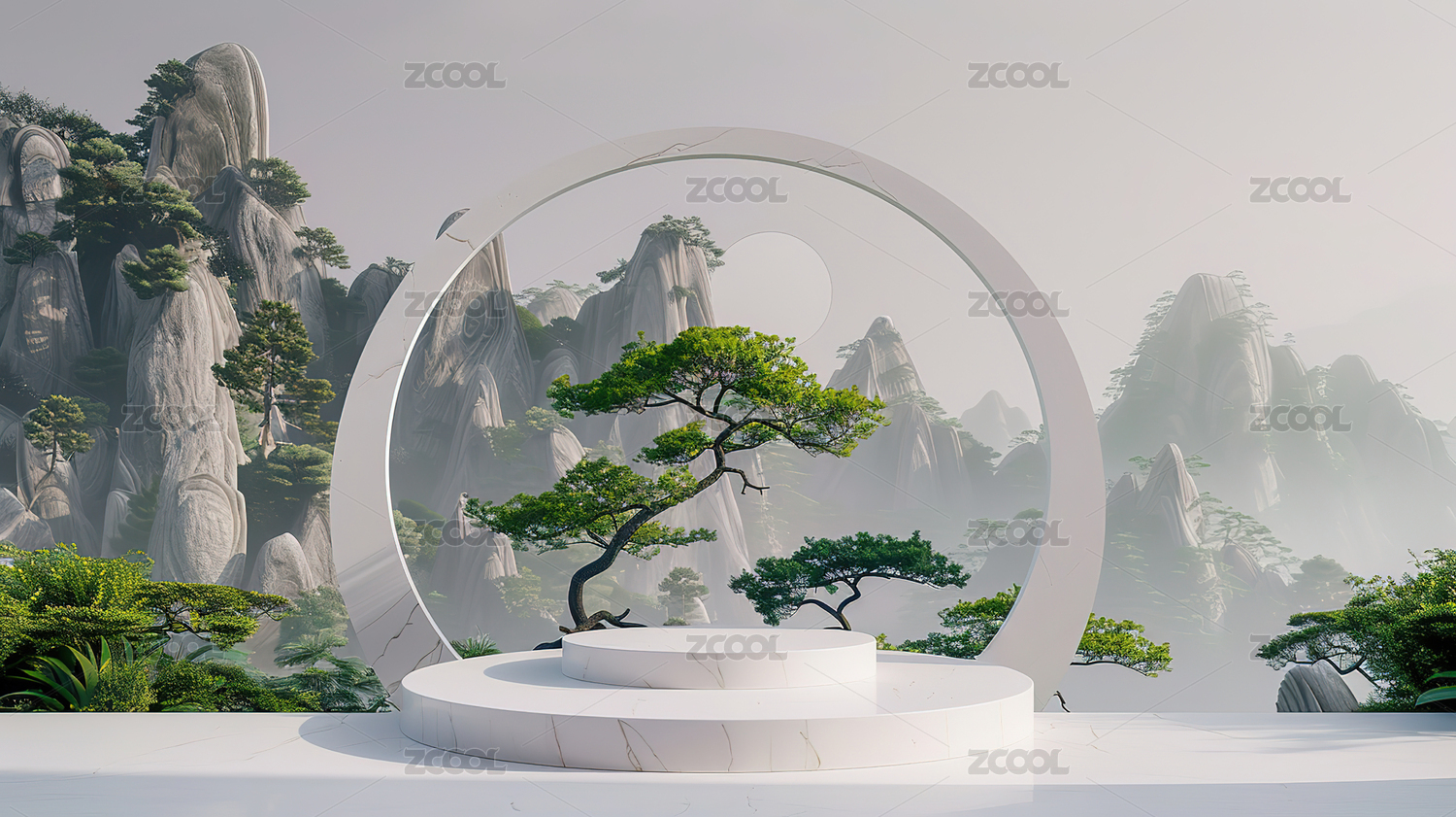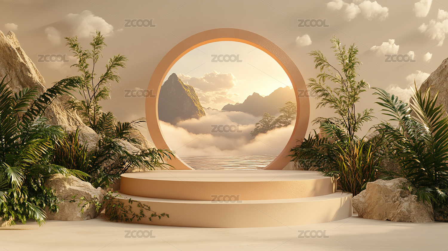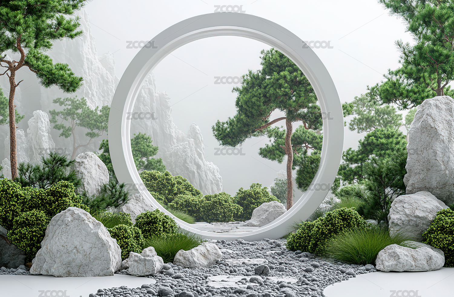雕塑,环形,自然,景观,艺术,现代,设计,极简,3D渲染,几何