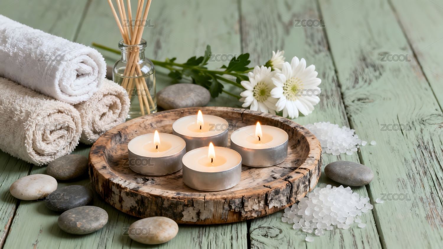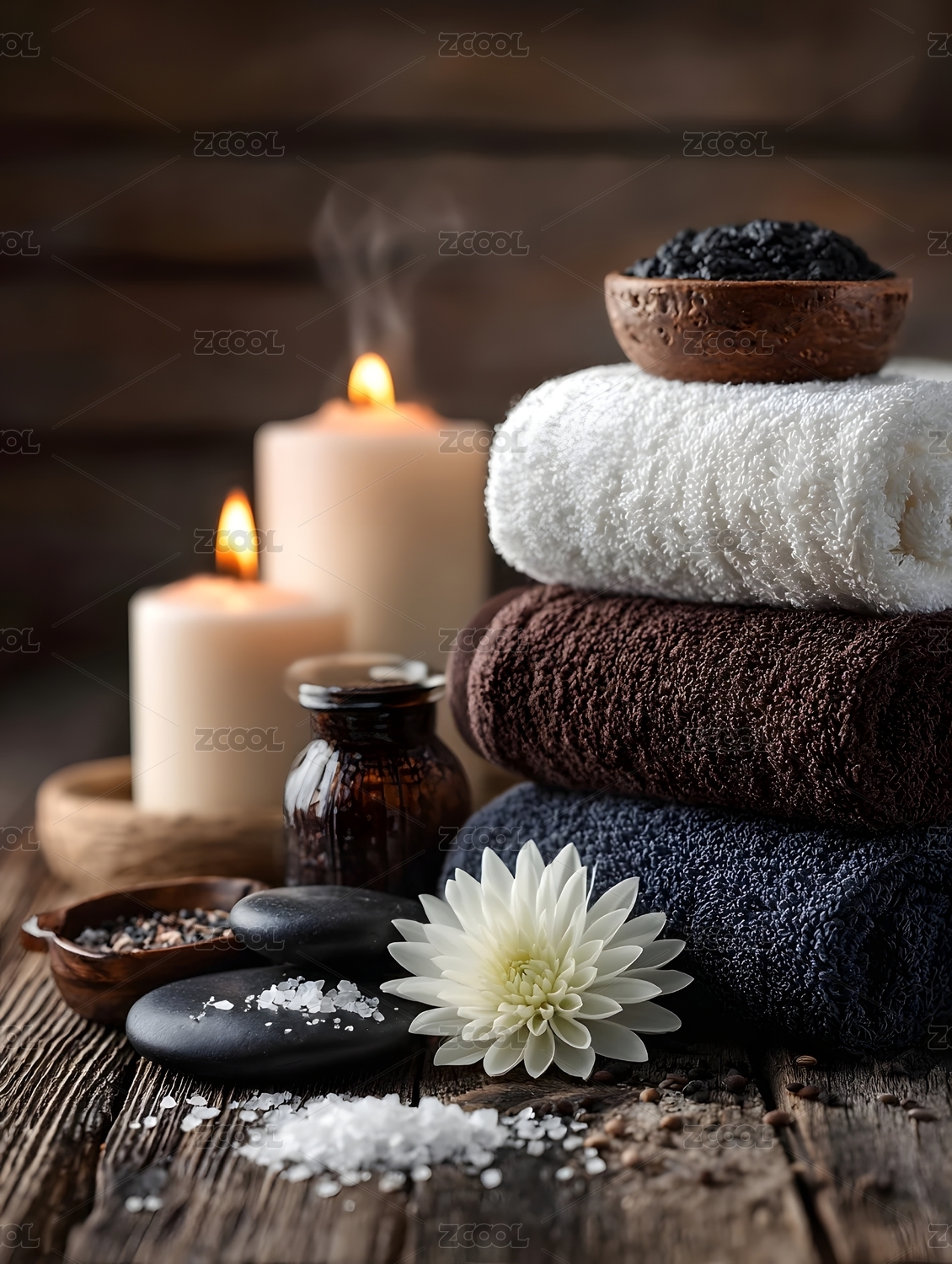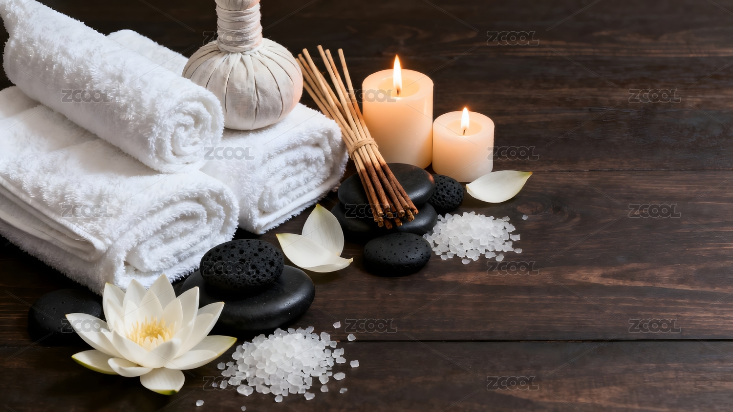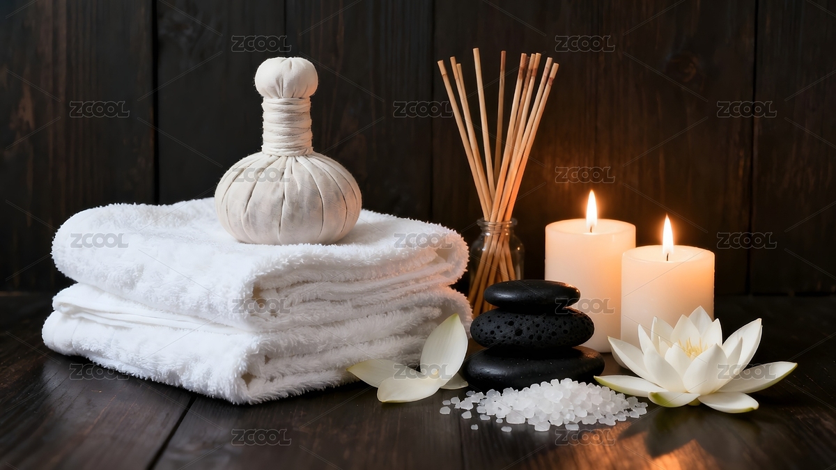 花瓣,温暖,莲花,蜡烛,按摩,毛巾,石头,盐粒,香薰,木棒