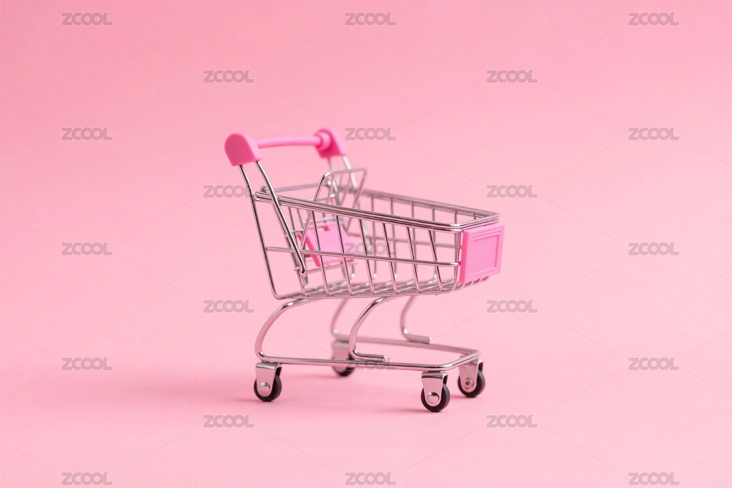 粉红色背景上空的购物车