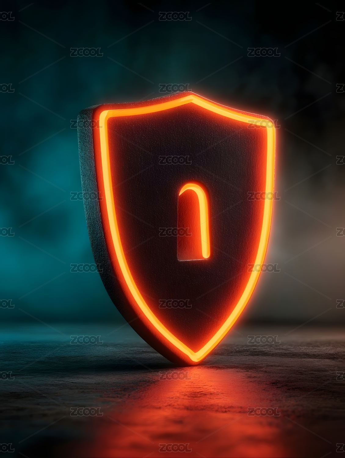 霓虹盾牌与锁孔标志