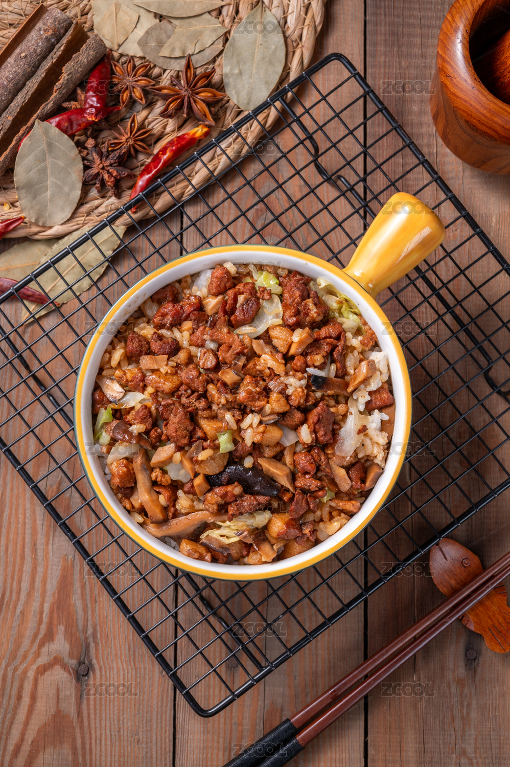 用砂锅装着的胡萝卜鸡蛋炒饭