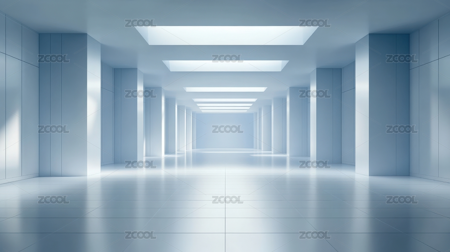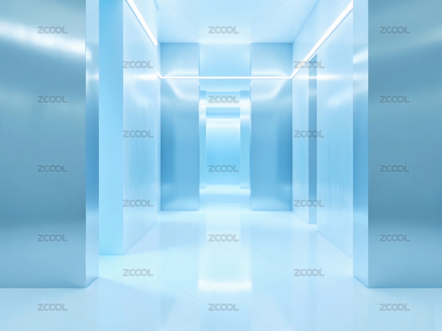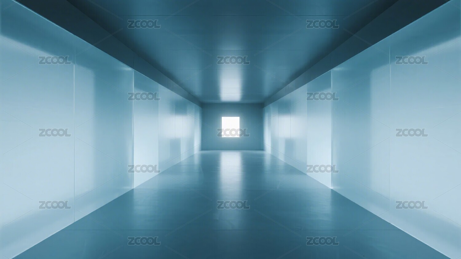空旷蓝色走廊尽头有光