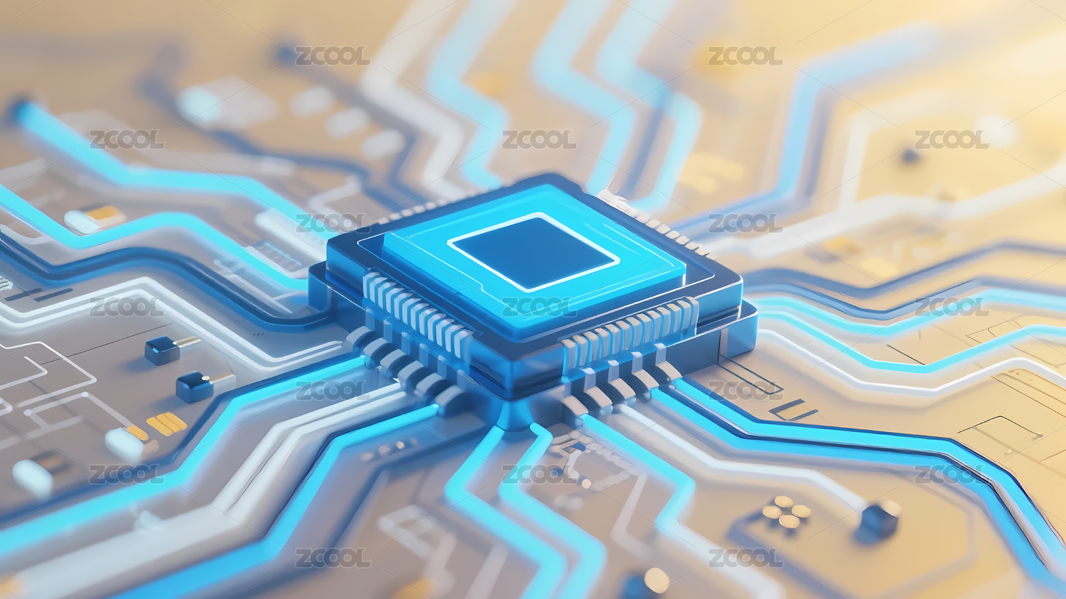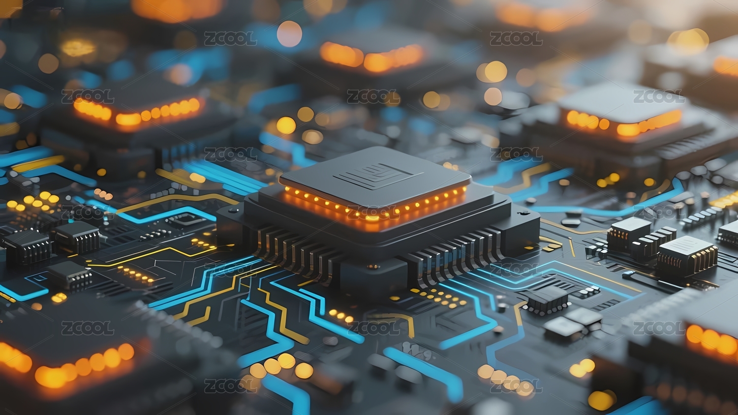 芯片金融科技赛博朋克人工智能三维渲染电路