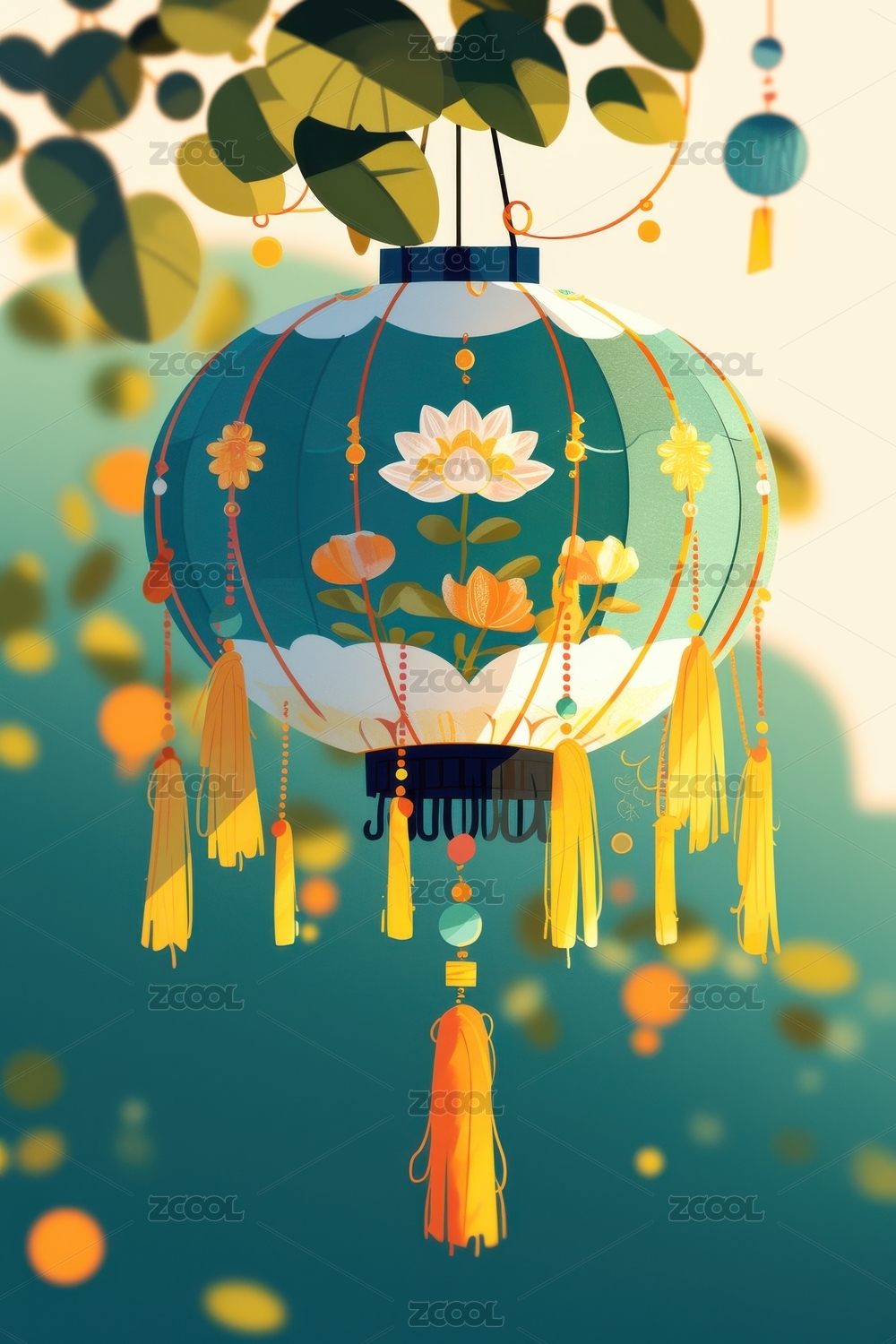 古风灯笼与枝叶