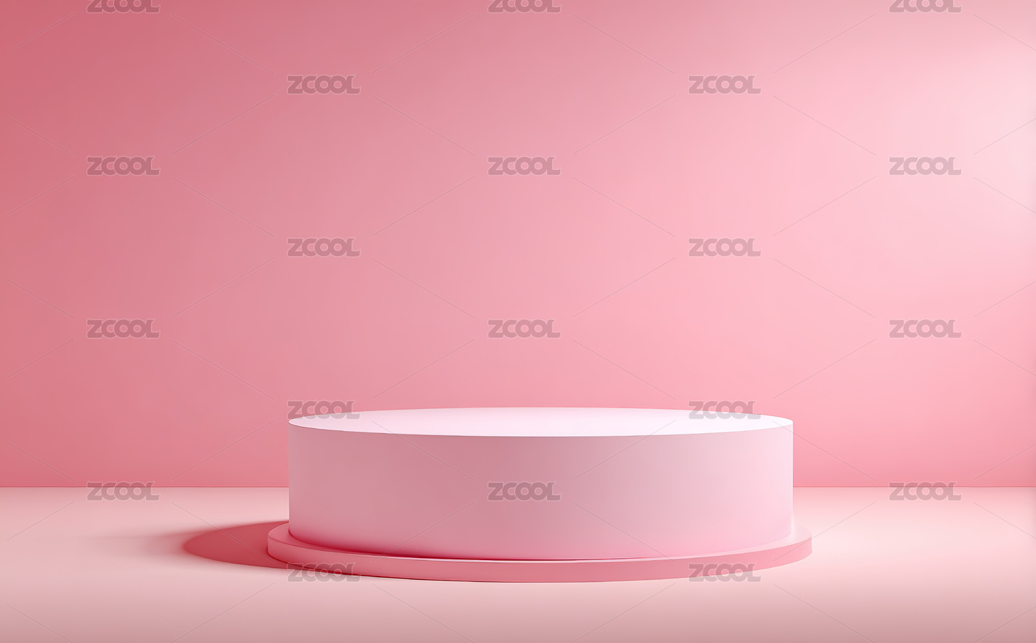 粉色背景下的简约圆柱展示台