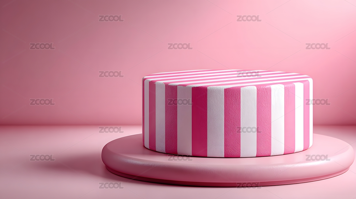 粉色条纹圆柱形物体置于粉色圆形底座上